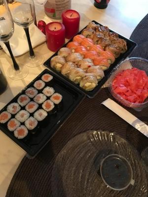 Всё отлично! Доставка и суши) мы остались очень довольны!