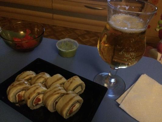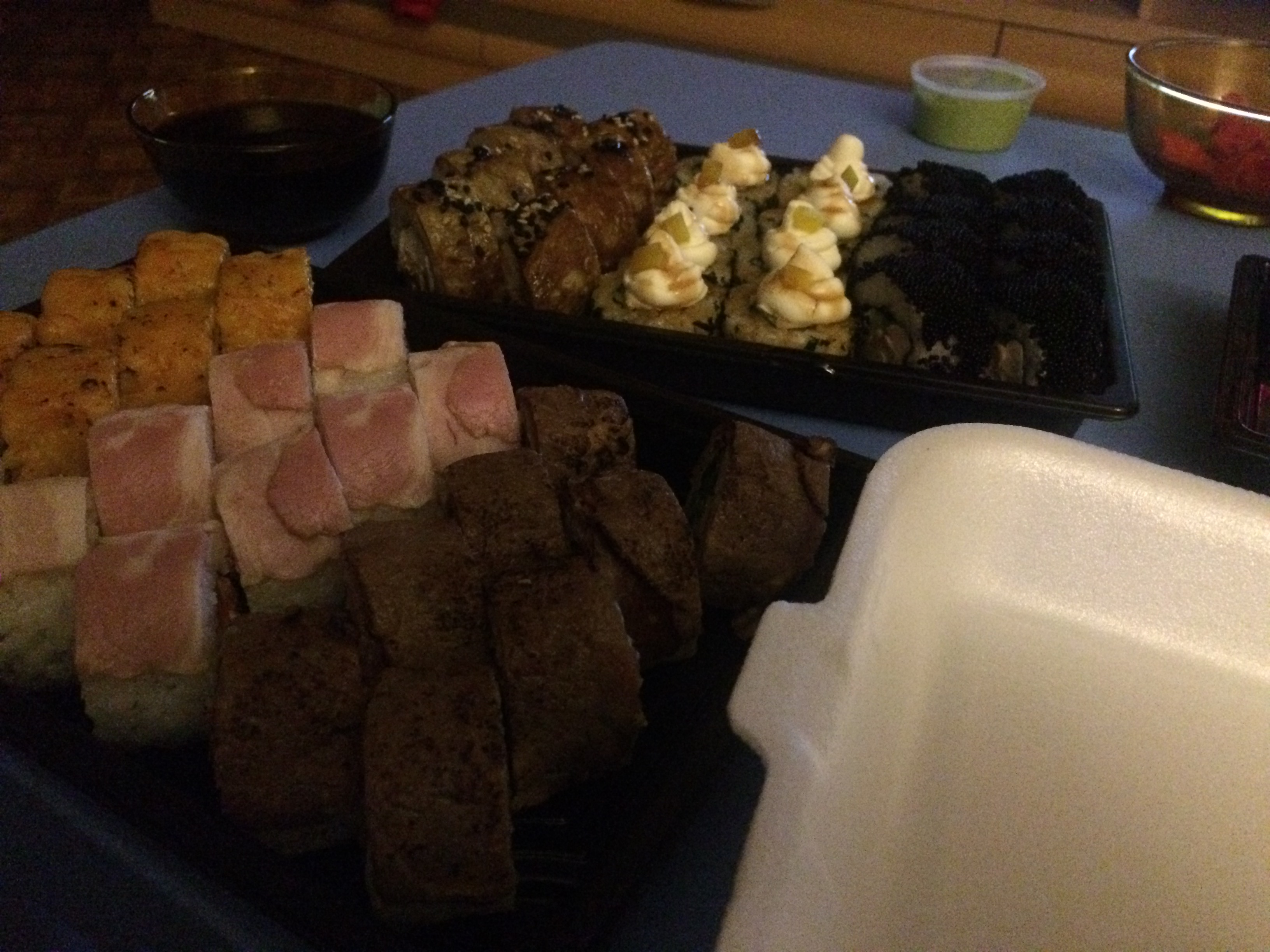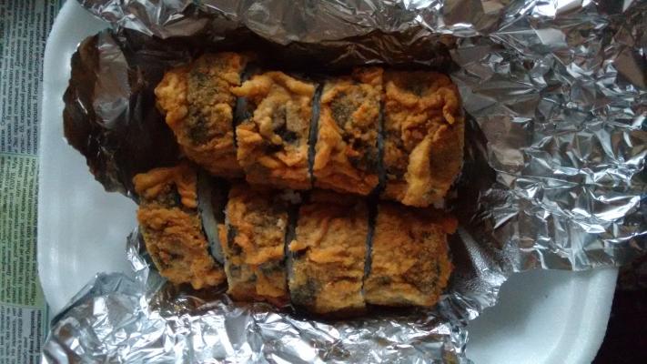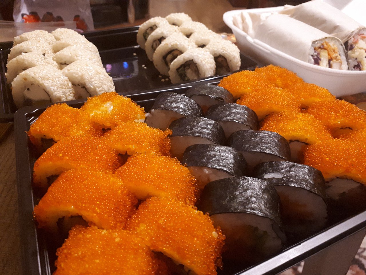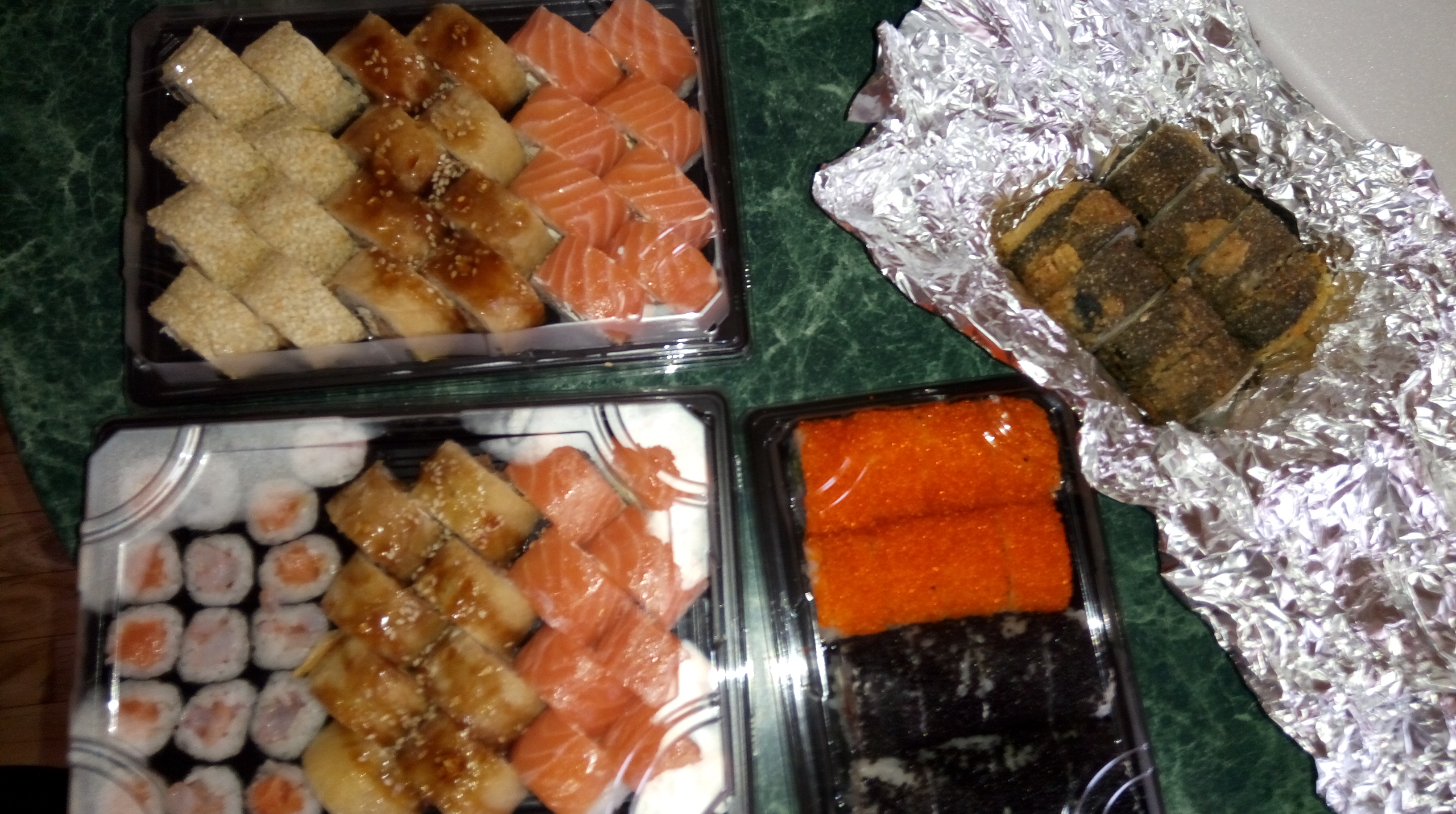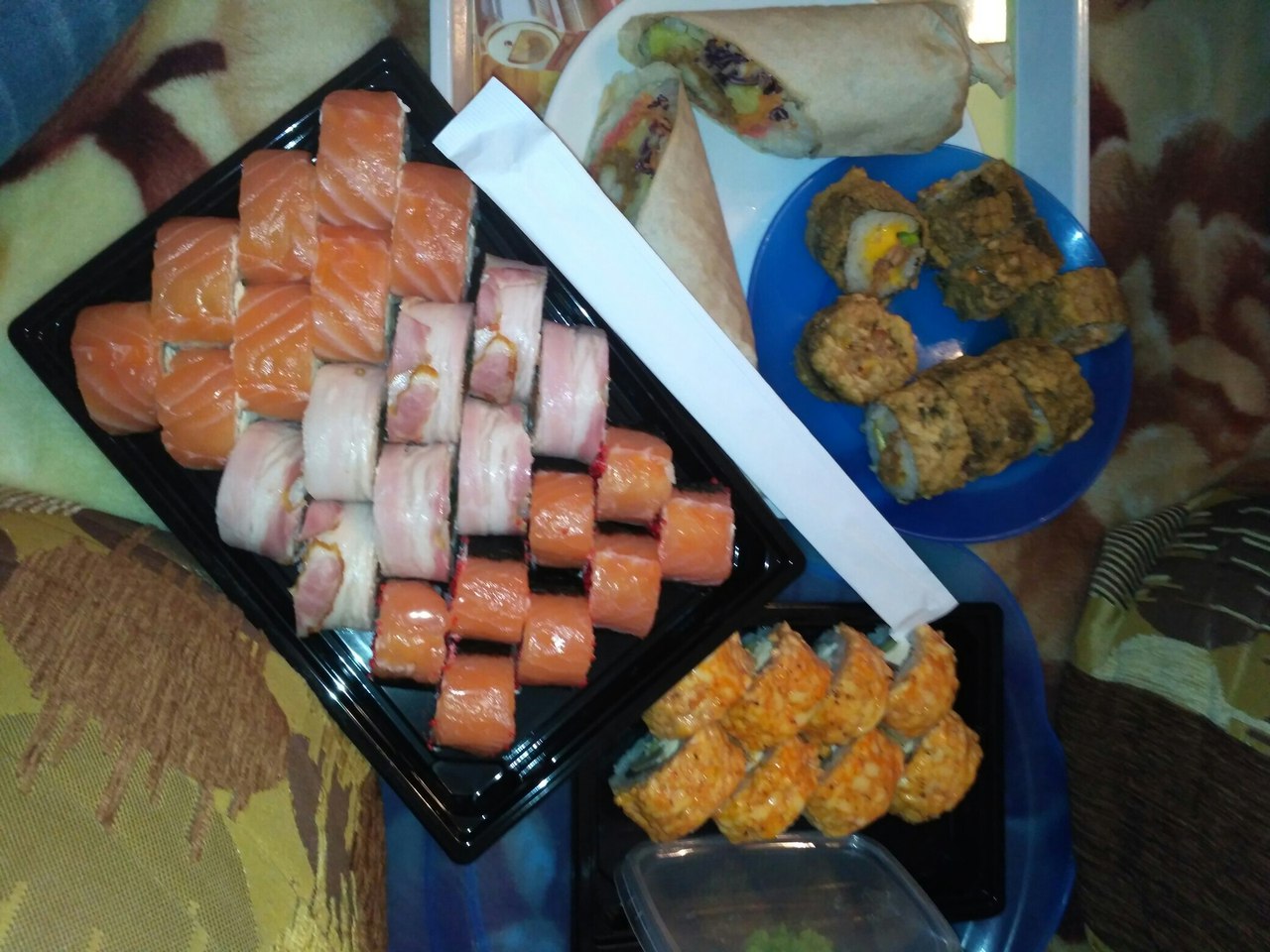 Один минус: в эту субботу заказали 2 сета самовывозом. В итоге дали в подарок горячий ролл. Он был очень невкусный. На фото столько начинки, а в реальности начинки не было почти совсем, просто куча липкого риса, который жуётся как резина со вкусом жаренной рыбы)) но, я так понимаю, дареному коню в зубы не смотрят))