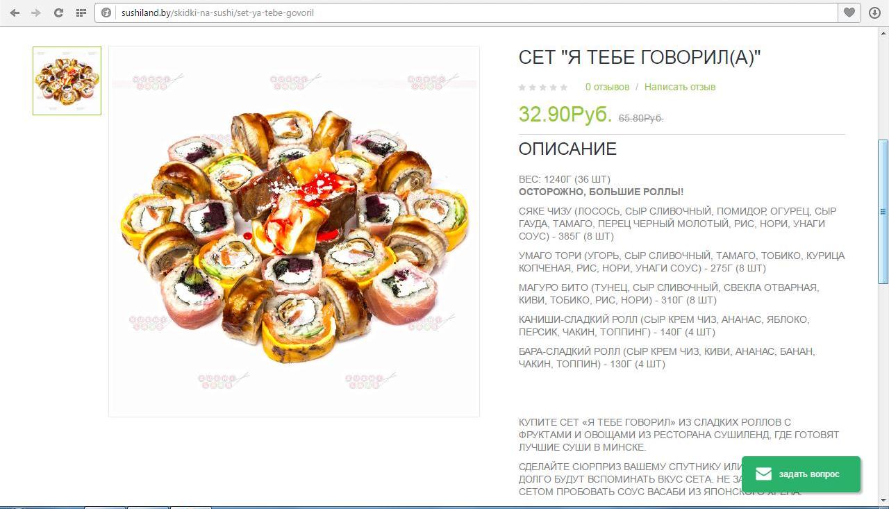 А, ВЫ не пробовали просерфить цены на доставки суши, не представленные на сливках?)))))) К сожалению, почти половина предприятий со сливок работают по принципу turkish-style : наценка 400% и от этих псевдо-цен СУПЕР-СКИДКИ до 70% ))))))) а, потом люди не доверяют и ищут подвох даже у добросовестных компаний, когда те действительно делают скидку в 50%...( просто нужно быть честнее, а не держать потребителя за идиота!