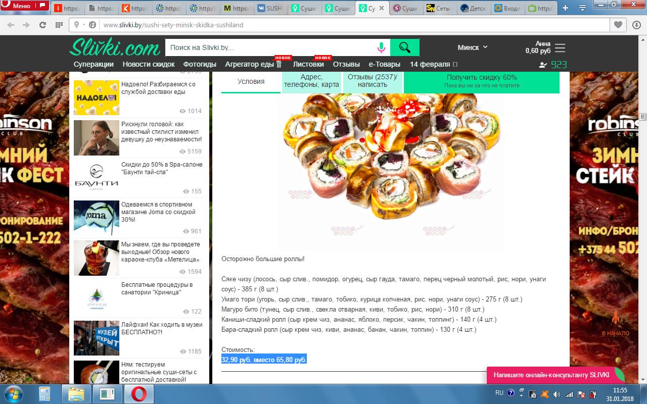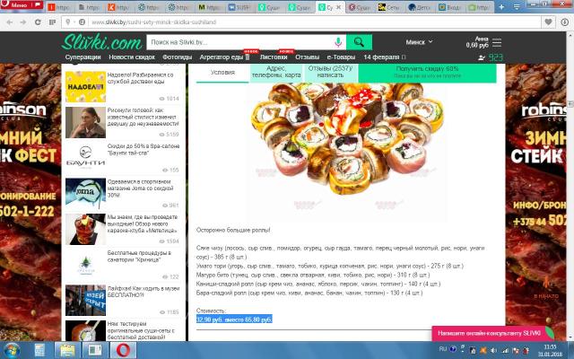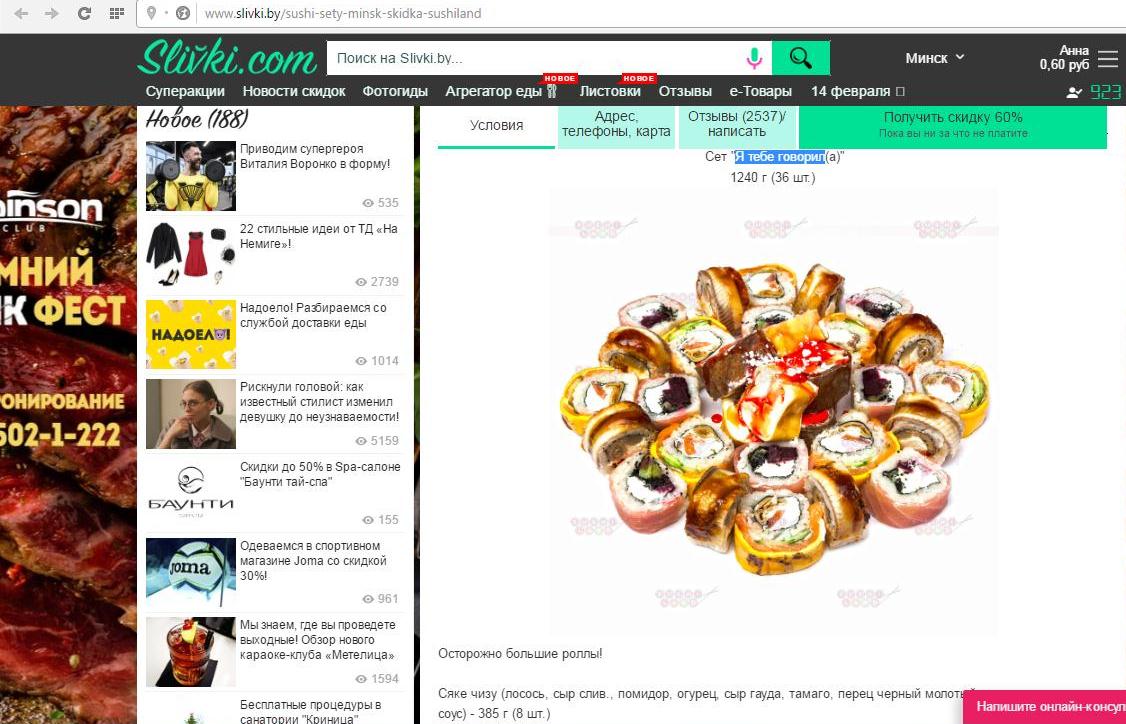 -"Роллы со скидкой 50% на slivki.by" рекламируются у нас на сайте, только при наличии промокода.