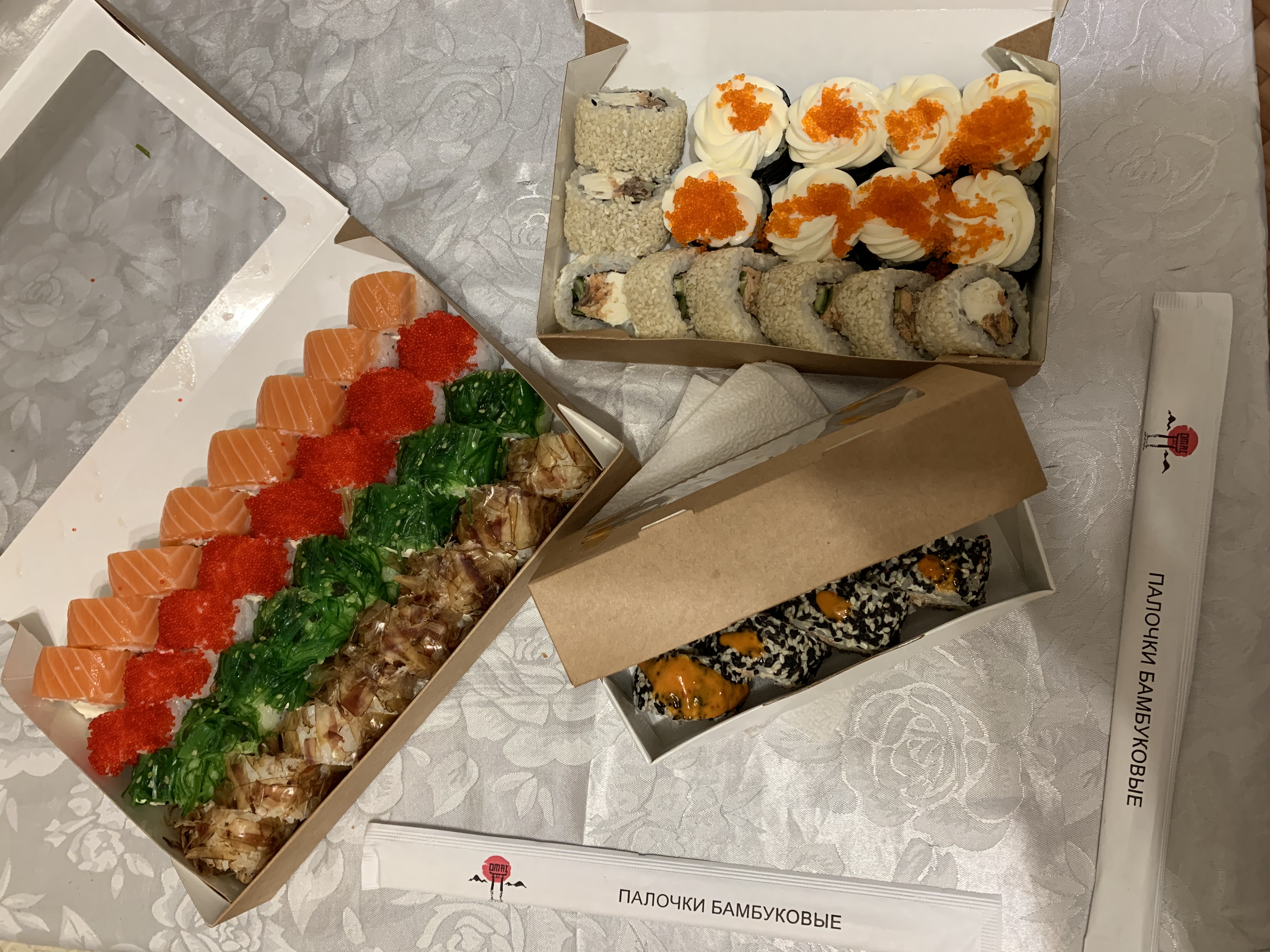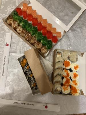 Здравствуйте!Вчера делала заказ вкуснющих роллов здесь)Ехала в гости и хотела устроить сюрприз, поэтому пришлось искать что то "новенькое", конечно в такие моменты немного переживаю, а будет ли вкусно? И разные мысли...но ! Вы действительно сделали очень вкусно и красиво)Роллы вкусные большие, адекватные цены! И вежливый курьер.Подарок удался нам все понравилось!Кажется, я с вами надолго))))