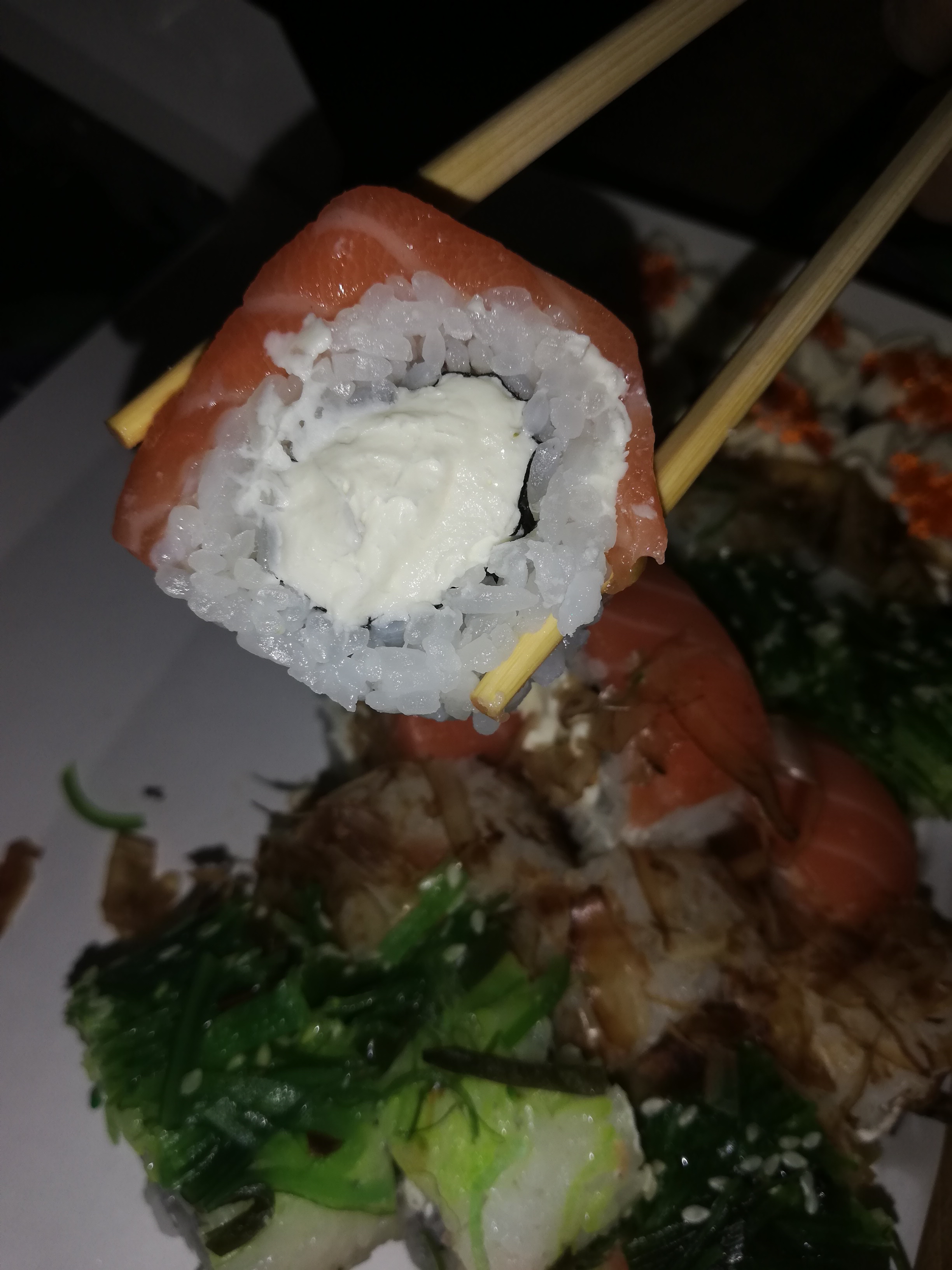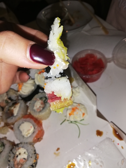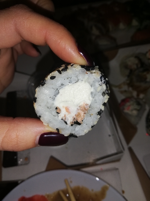 Уровень суши из супермаркета(( Расстроена и разочарована. Суши несвежие. Рис твёрдый. Вся начинка филадельфии - это сыр, и все. На фото все видно. Впервые захотелось все выбросить. Невкусно. Однозначно заказывать не буду. На фото сет рождественский. Один сыр творожный. ((