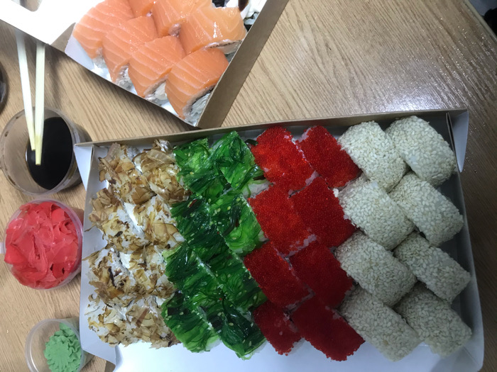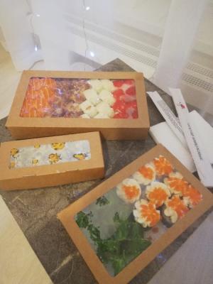 Заказали себе на обед суши сет,  скорость качество на отлично,  продолжим  на выходных дегустацию ваших продуктов,  а впереди наполним и содержание наших праздников.Огромное спасибо за вашу работу!