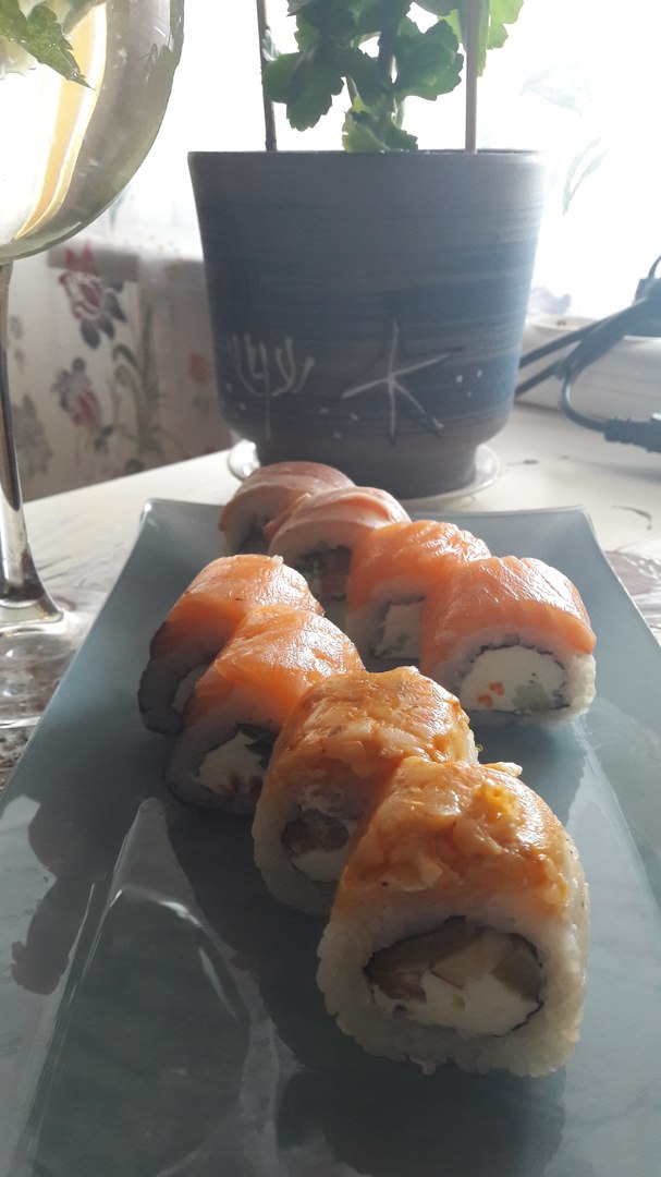 Вкусные сочные крупные суши. Будем заказывать еще