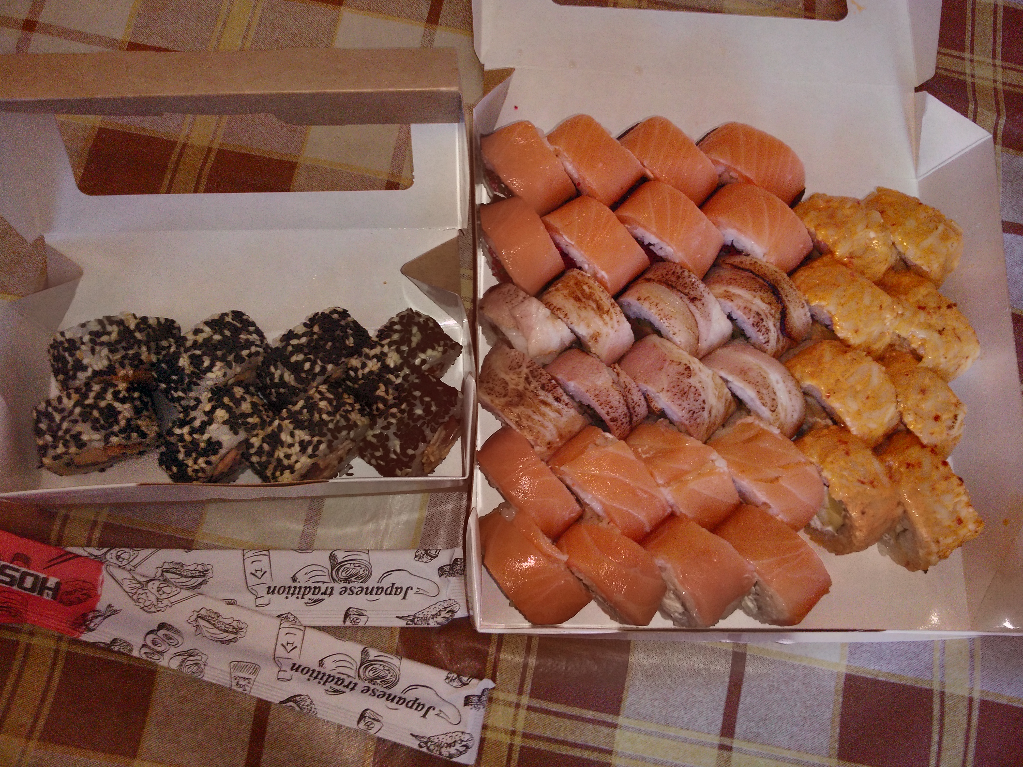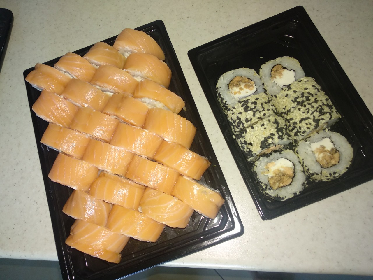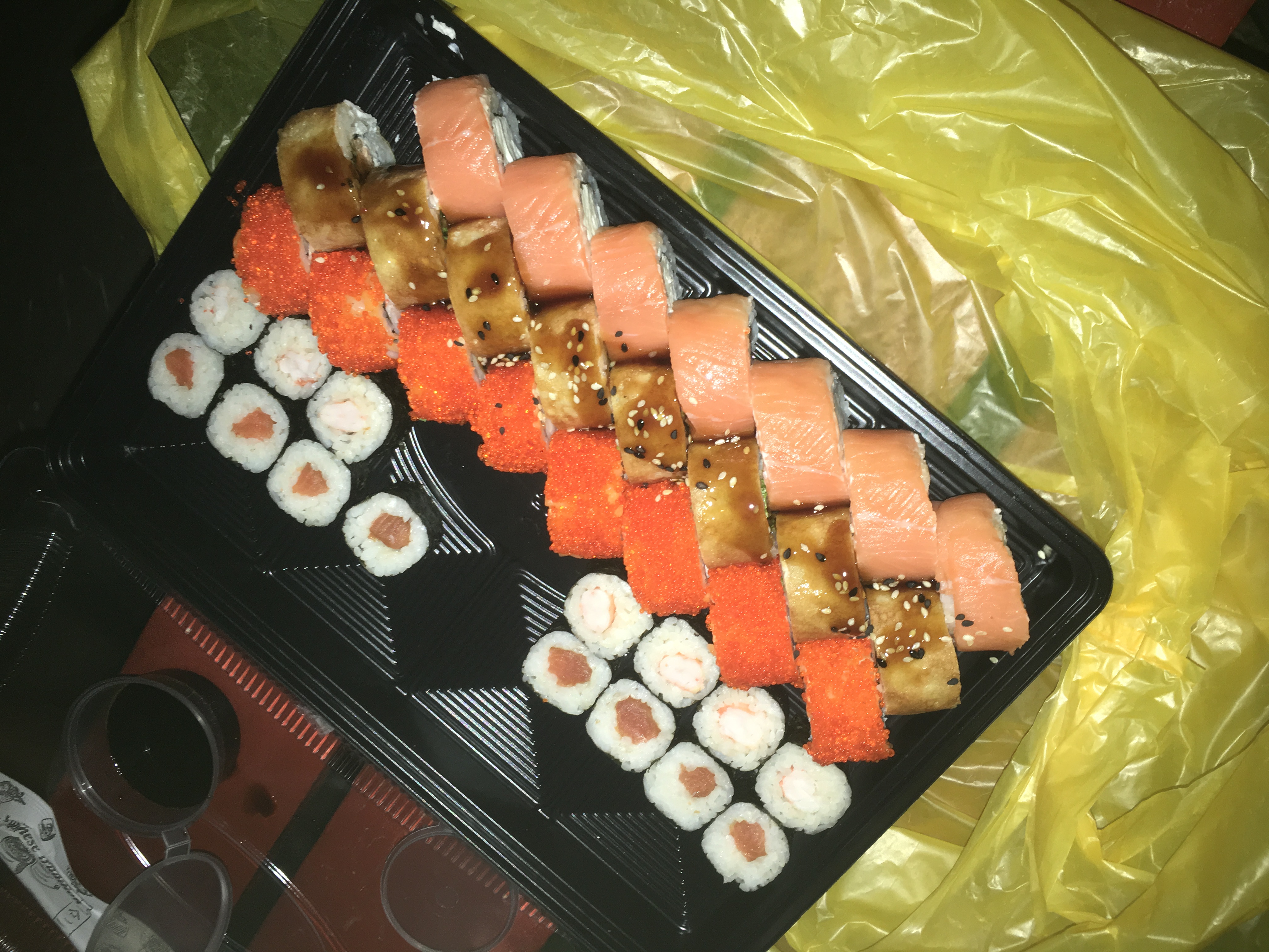 Много знакомых советовало эту доставку и вот я решилась сделать свой заказ. На фото сет Сумотори, точнее лишь то, что от него осталось  Роллы оказались очень вкусными, много сыра, много рыбки, и по весу вышло даже больше, чем указано. Довольны были с мужем по полной, будем заказывать ещё