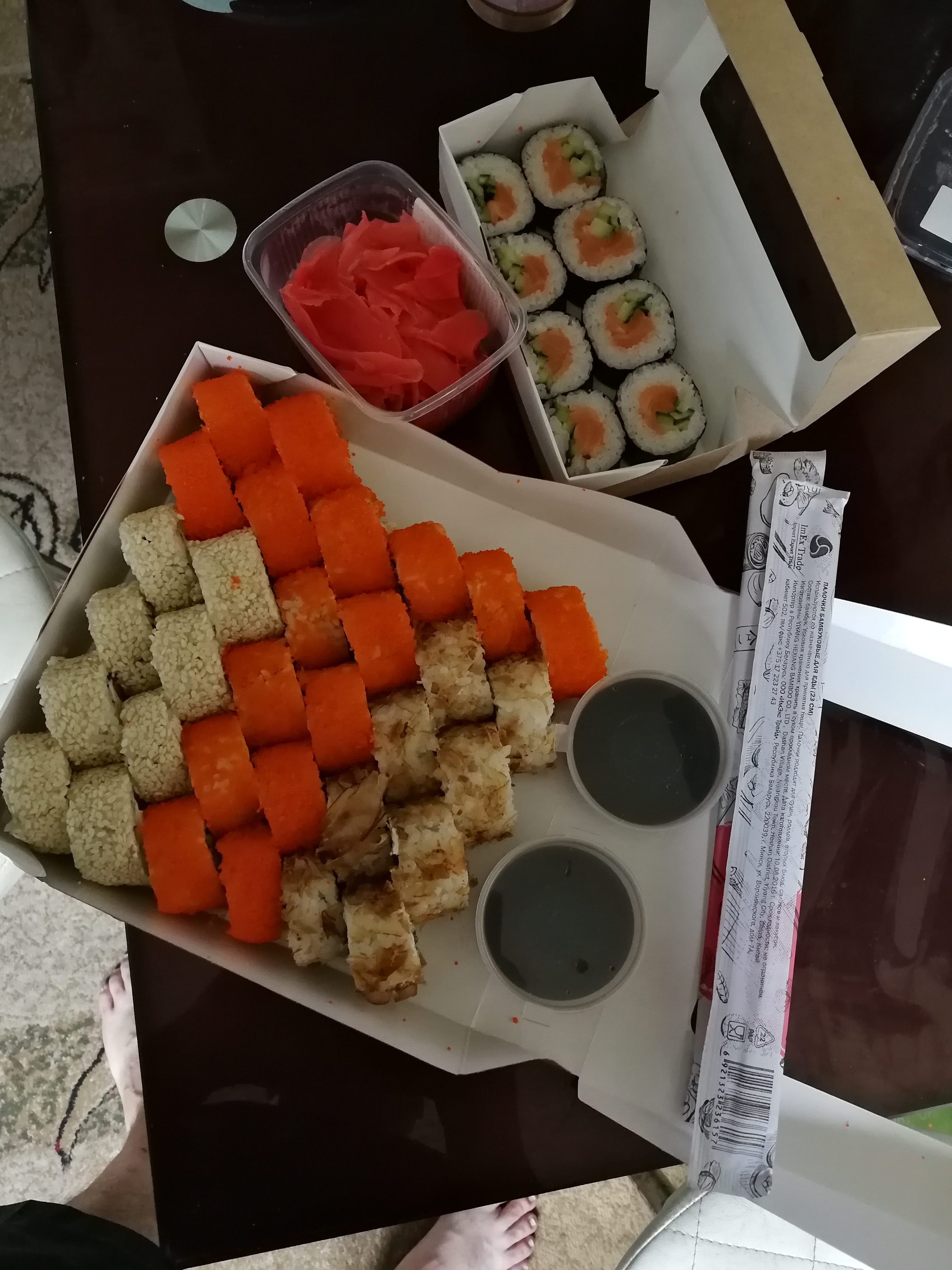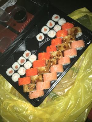 Заказываем не в первый раз и в очередной раз  остались довольны! Всё свежее, начинки не пожалели, суши аккуратные, не рассыпаются, рис хорошо сварен, сыр тает)) Филадельфия восхитительнаСпасибо!