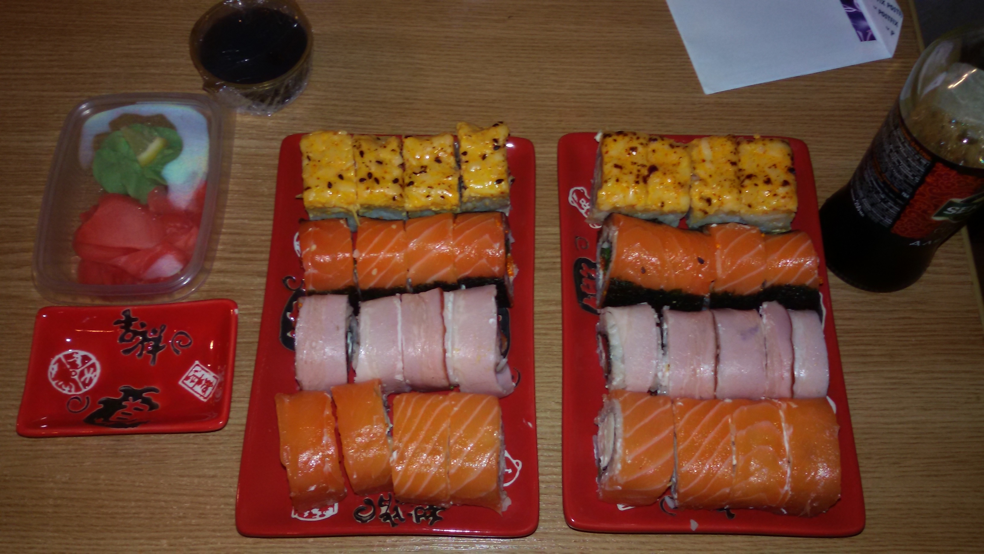 Заказывали заранее сет: "Атланта". Суши слегка "заветрились", рис был немного суховат. В остальном претензий нет. Оценка - 4 из 5.