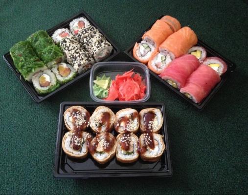 Заказывали первый и последний раз, суши несколько странные на вкус, причем одного вида могут быть штука нормальная, а вторая с каким-то привкусом. Разваливаются. Ощущение, что не очень свежая рыба, а кое-где и вовсе рыбный паштет (видимо жареный лосось)).