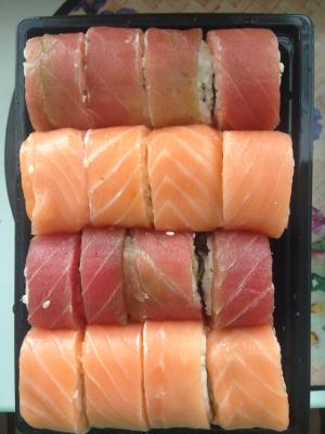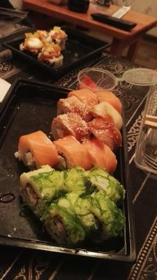 В первую очередь хотелось бы отметить, что суши не только вкусные, но и сытные! Одного сета на двоих хватает сполна. Крайний раз, заказывая суши в пятницу, немного огорчил внешний вид, а именно нарезка роллов - разной толщины, где-то дважды разрезаны, а сладкие суши и вообще местами разваливаются. Понятно, что заказов в пятницу много, и вопрос эстетического вида переходит на второй план. И наконец, в пакет все было сложено так, что суши в большом контейнере, который был внизу, попросту сплющились. Немного огорчена.