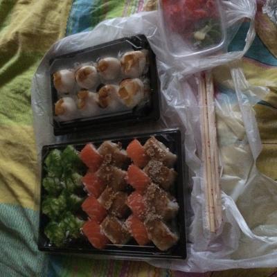 Заказывал 2 сета 02.08.2016. Забирал сам. Дали в подарок сладкие суши. Все суши были вкусными и сделаны вовремя. Спасибо)) Буду ещё тут заказывать и всем советовать.