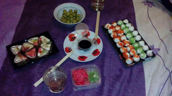 суши просто ужасные.рис весь разваливается.такое чувство что он вообще не для суши.а обыкновенный..заказала сет окинава.было не 4 вида как указано в описании.а три.два вида были одинаковые....постные и не вкусные.вся рыба внутри со шкуркой.половину пришлось выкинуть.я молчу про курьера у которого не было сдачи.который оставил у меня заказ и ушел без денег искать в машине сдачу)а если бы я больше не открыла дверь?)но вины курьера нет.все вопросы к руководству.конечно...короче кошмар.я всегда заказываю у одного и того же продавца.сегодня решила поэкспериментировать.больше не буду.ну.надеюсь я не отравлюсь...приятного аппетита...