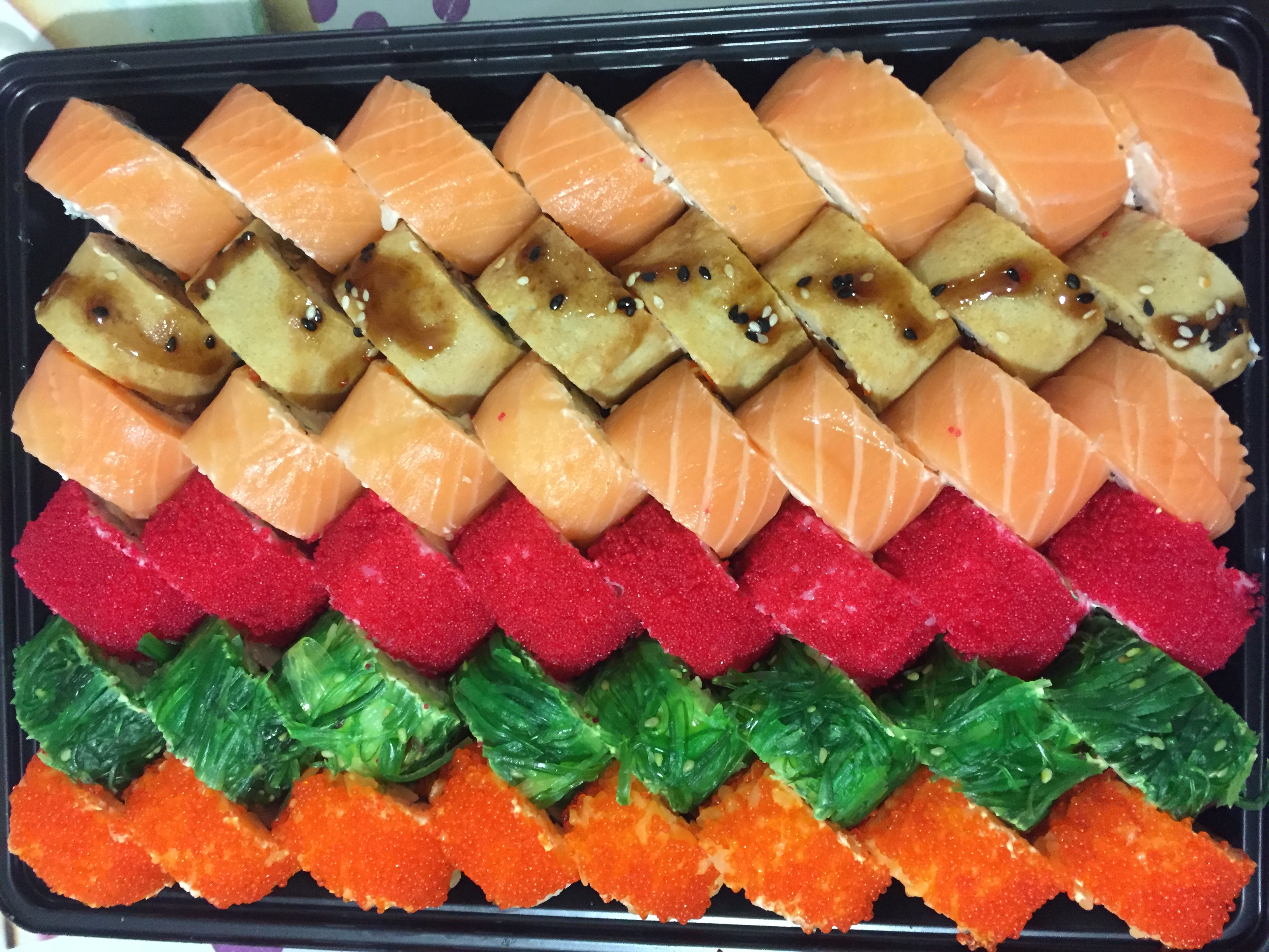 - ролл со свежим лососем, рис, нори, свежий огурец, сливочный сыр, салат чука (8 шт)