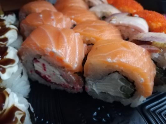 - "Филадельфия каппа" (лосось, сыр сливочный, огурец, нори, рис) (8 шт)