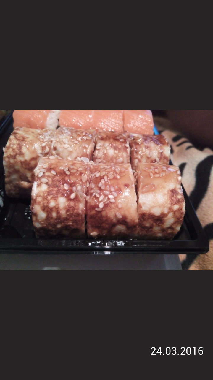 заказали Хосомаки сет) Все отлично)) сверху столько сыра фету (или не фету), что обалдеть)) За самовывоз получили в подарок бесплатно сладкий подарок)) очень приятно)) всем советую))