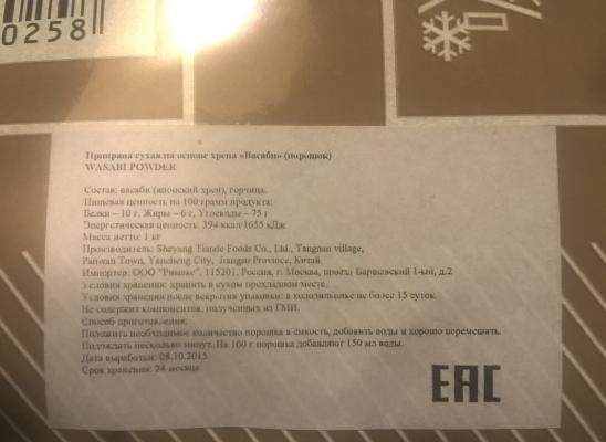 Внизу скидывали фотографию порошка васаби. Не вижу на пачке производителя и срок годности. Прошу фото
