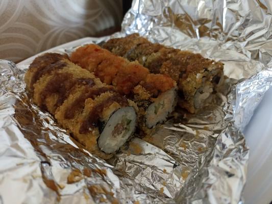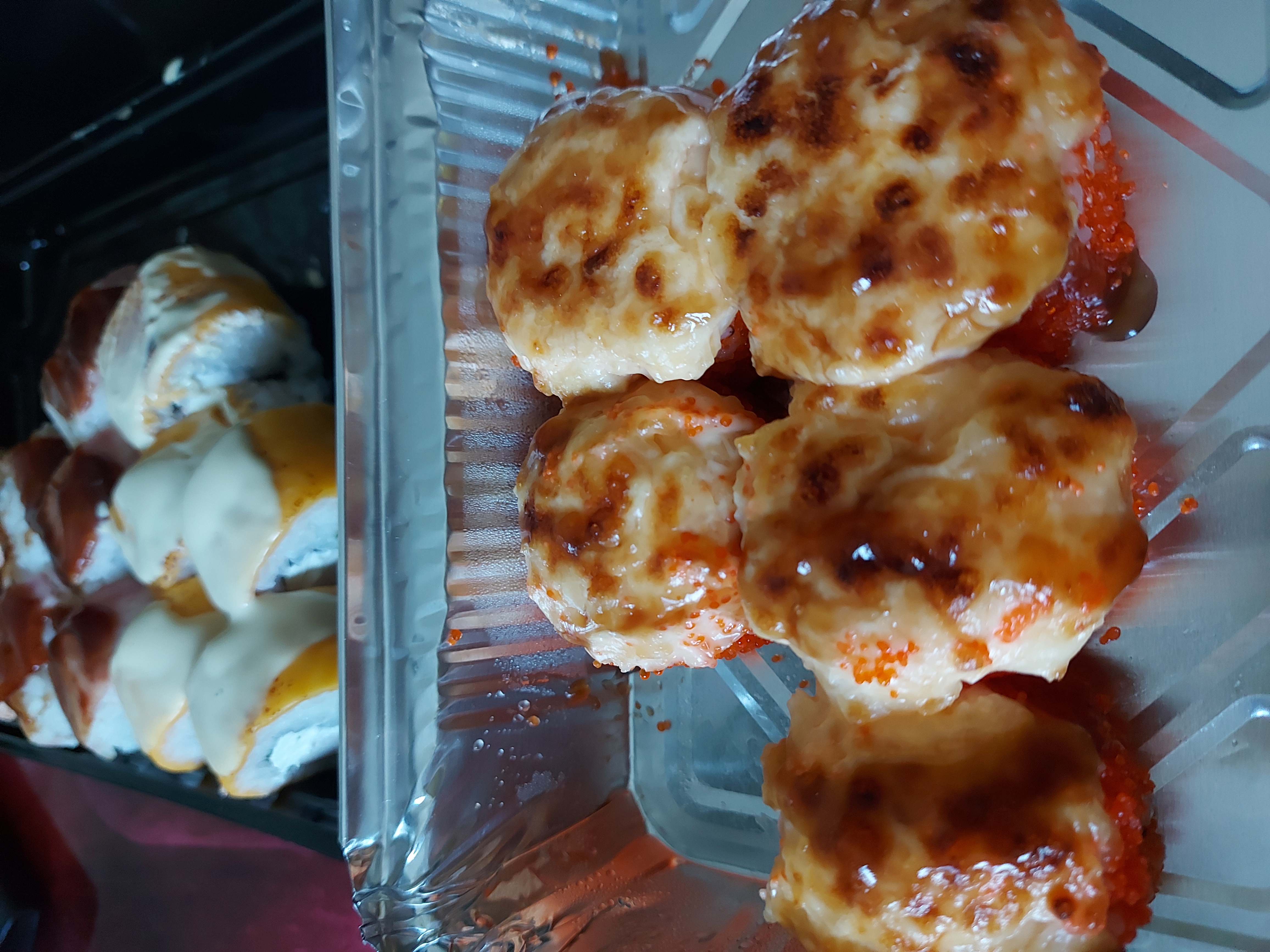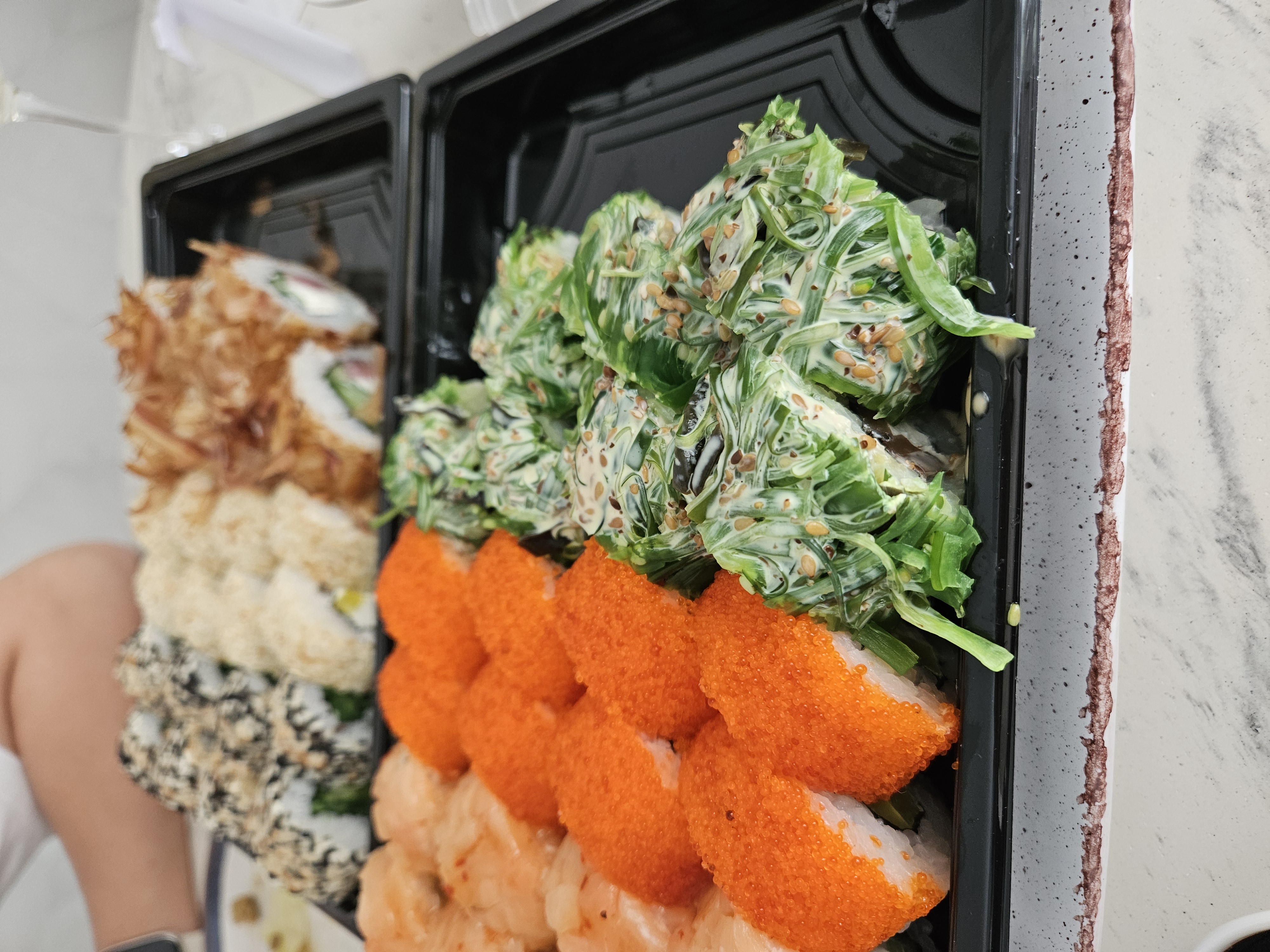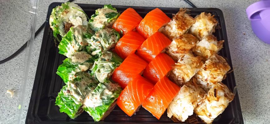 01.05.2024 заказывали на доставку 2 ролла опаленных с краб-миксом в устричном соусе и Сет "Хотто". В Сухарево привезли примерно за 1 час 20 минут. Суши очень вкусные, были еще теплые, хорошо скручены) Однозначно рекомендасьон, будем пробовать еще другие сеты)