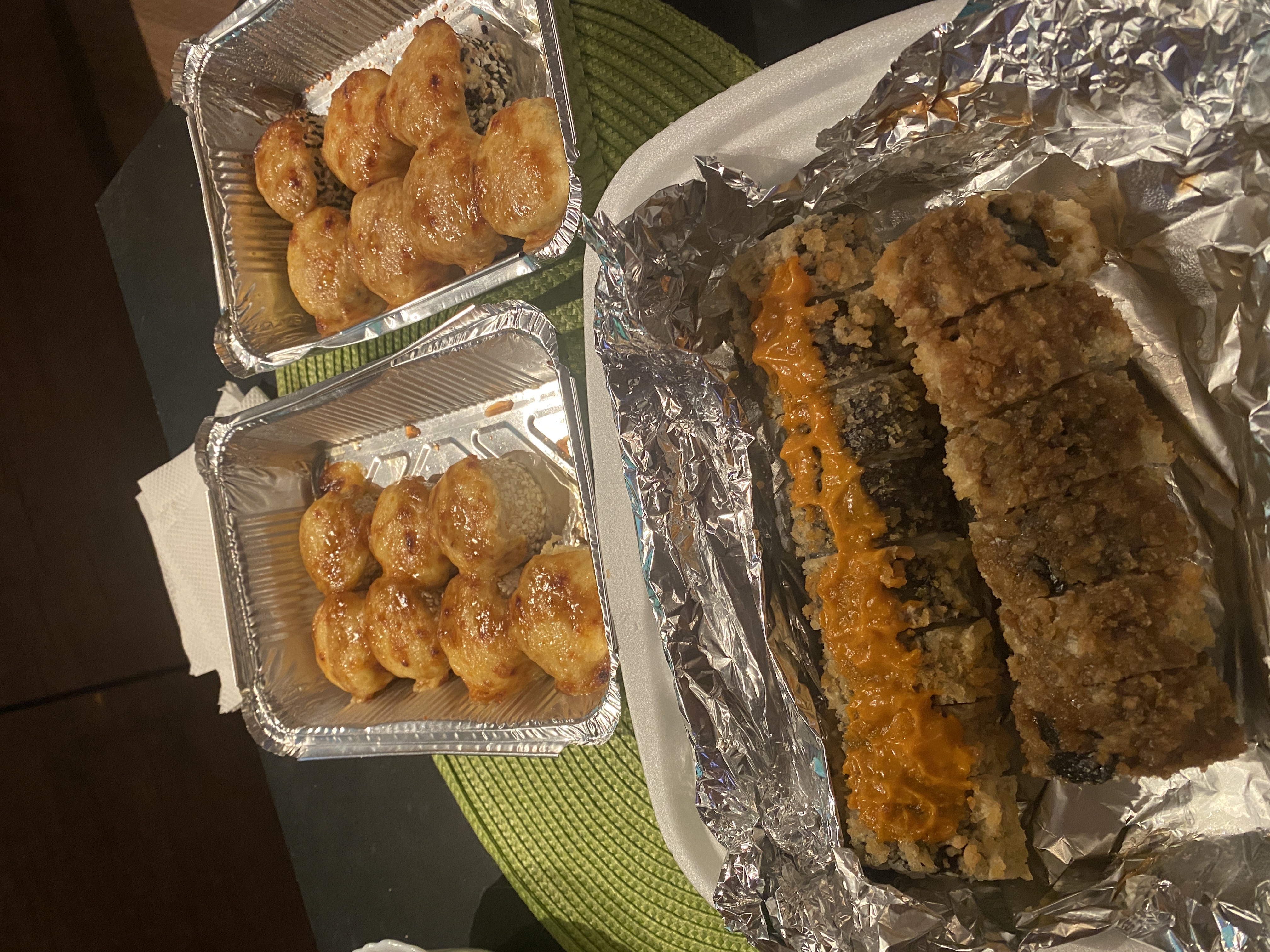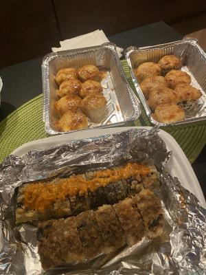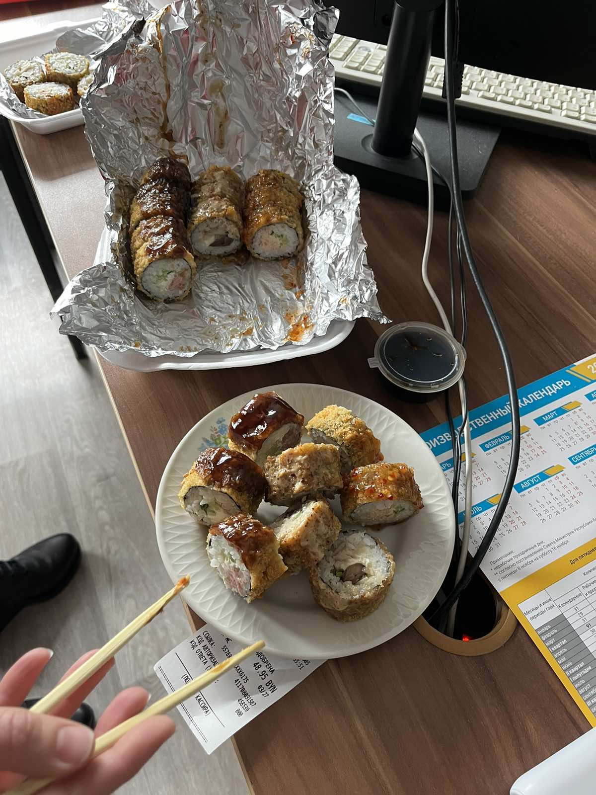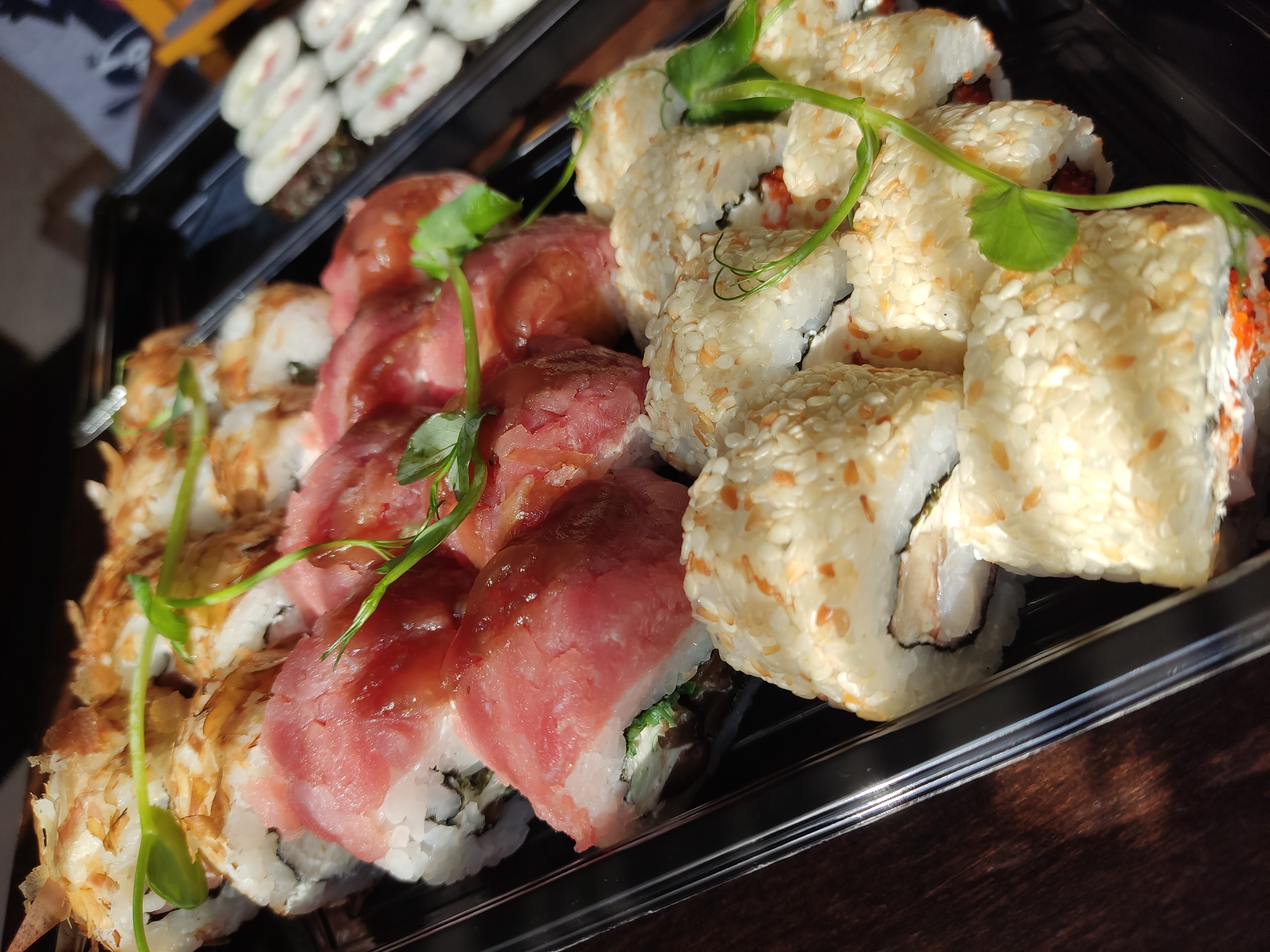 01.05.2024 заказывали на доставку 2 ролла опаленных с краб-миксом в устричном соусе и Сет "Хотто". В Сухарево привезли примерно за 1 час 20 минут. Суши очень вкусные, были еще теплые, хорошо скручены) Однозначно рекомендасьон, будем пробовать еще другие сеты)