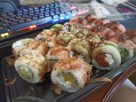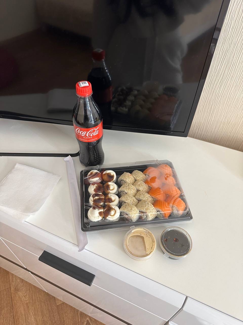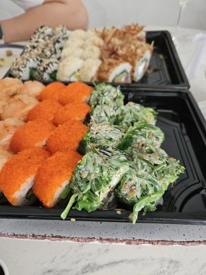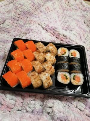 Очень приятный сервис, доставка . Суши свежие, вкусные, большие , не сухие , не разваливаются. Однозначно будем еще заказывать