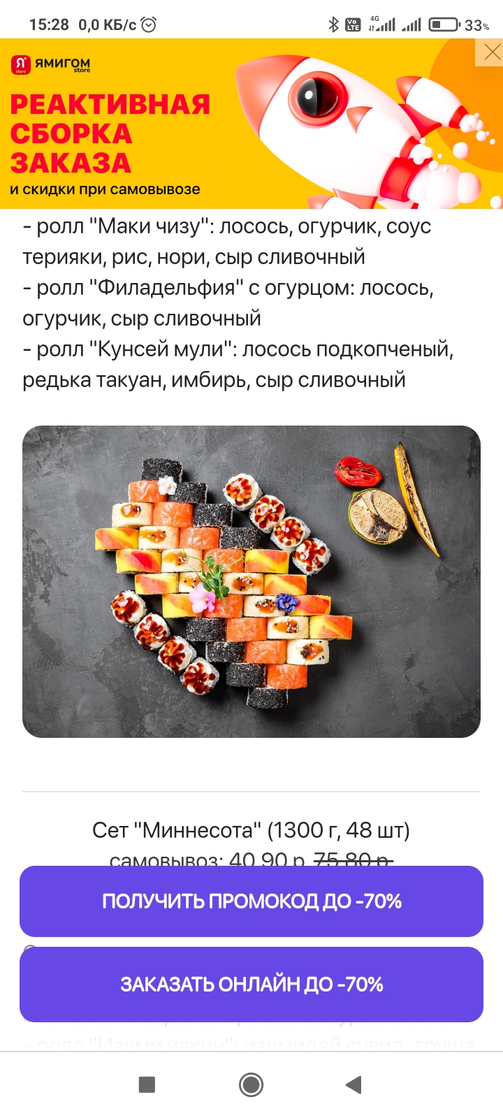 - Промокод также дает право на скидку до 35% на роллы от "THE СУШИ"