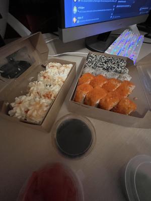 - Гарнир в подарок (при заказе сета). Бесплатная упаковка и 2 комплекта палочек!