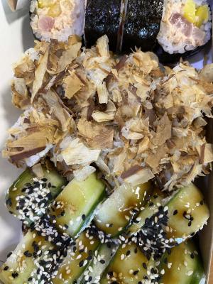 - Дополнительно к роллам японский гарнир (васаби, маринованный имбирь, сваренный по специальной технологии соевый соус): 4,70 р. 5,80 р.