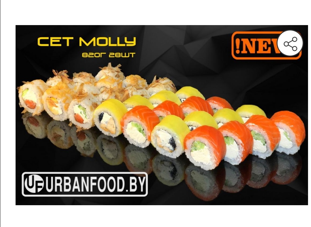 - Промокод дает право на скидку до 57% на суши-сеты, роллы от "Urbanfood.by"