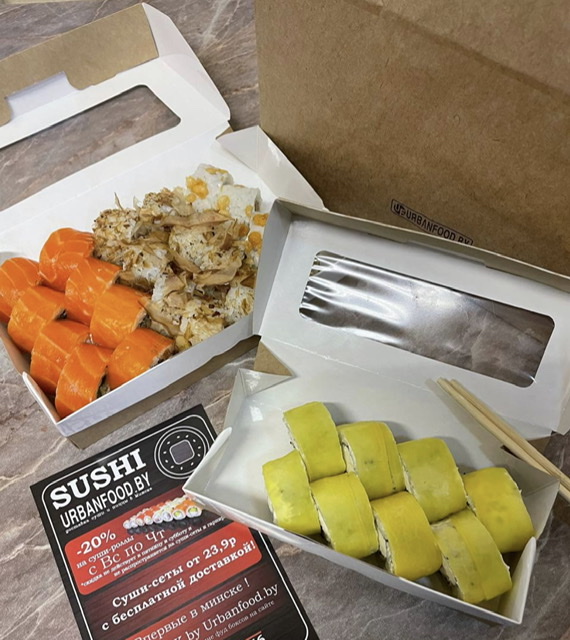 - Промокод дает право на скидку до 57% на суши-сеты, роллы от "Urbanfood.by"