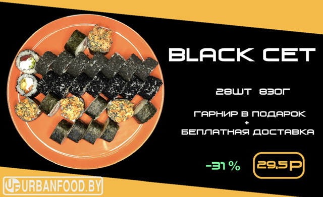 - Промокод дает право на скидку до 57% на суши-сеты, роллы от "Urbanfood.by"