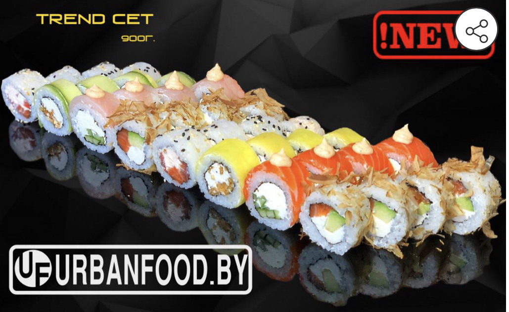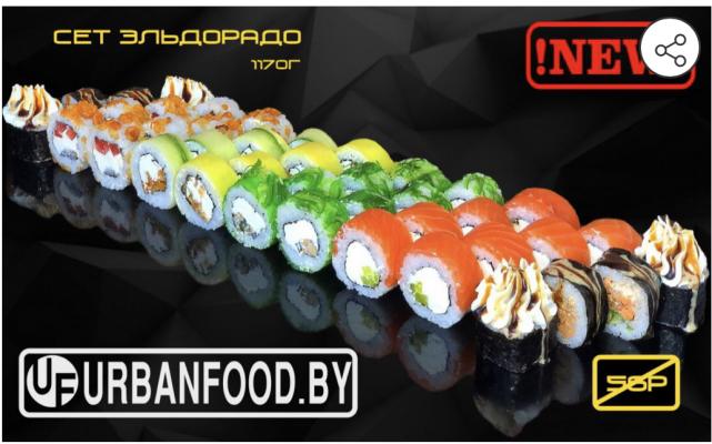 - Промокод дает право на скидку до 57% на суши-сеты, роллы от "Urbanfood.by"