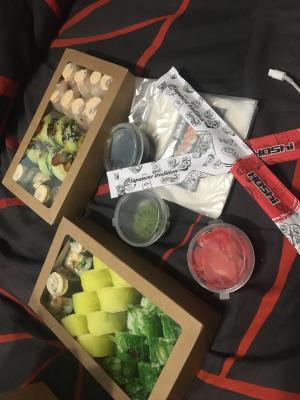 - Гарнир в подарок (при заказе сета). Бесплатная упаковка и 2 комплекта палочек!