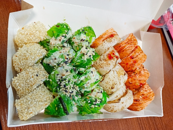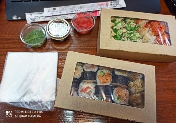 - Гарнир в подарок (при заказе сета). Бесплатная упаковка и 2 комплекта палочек!