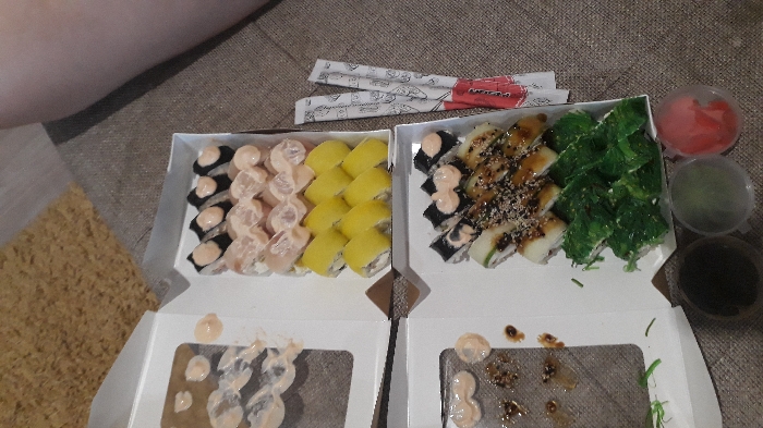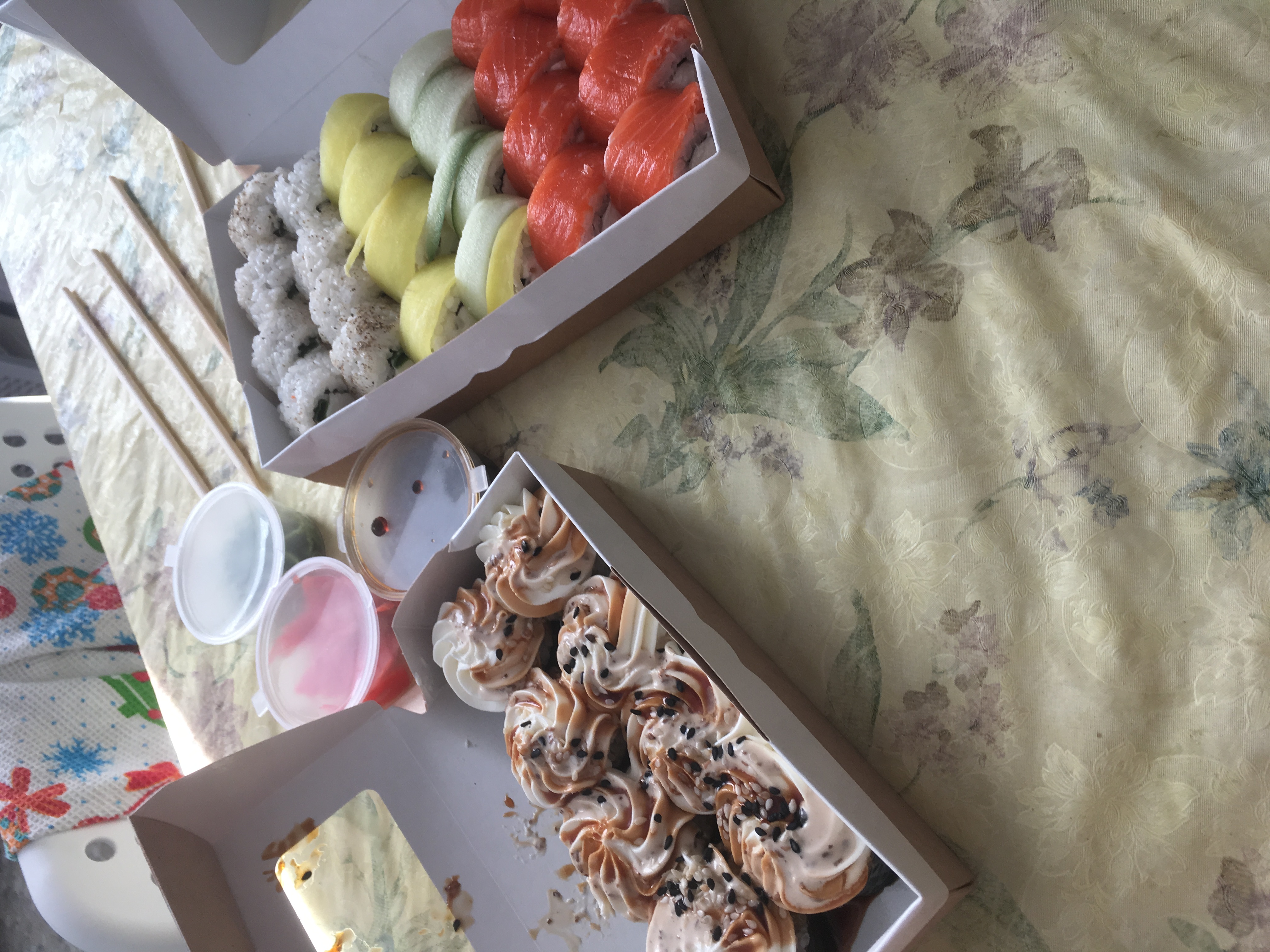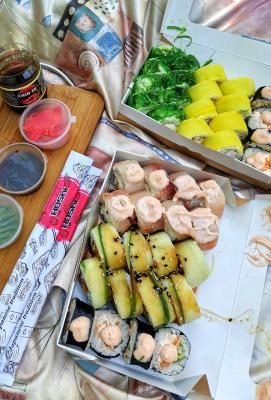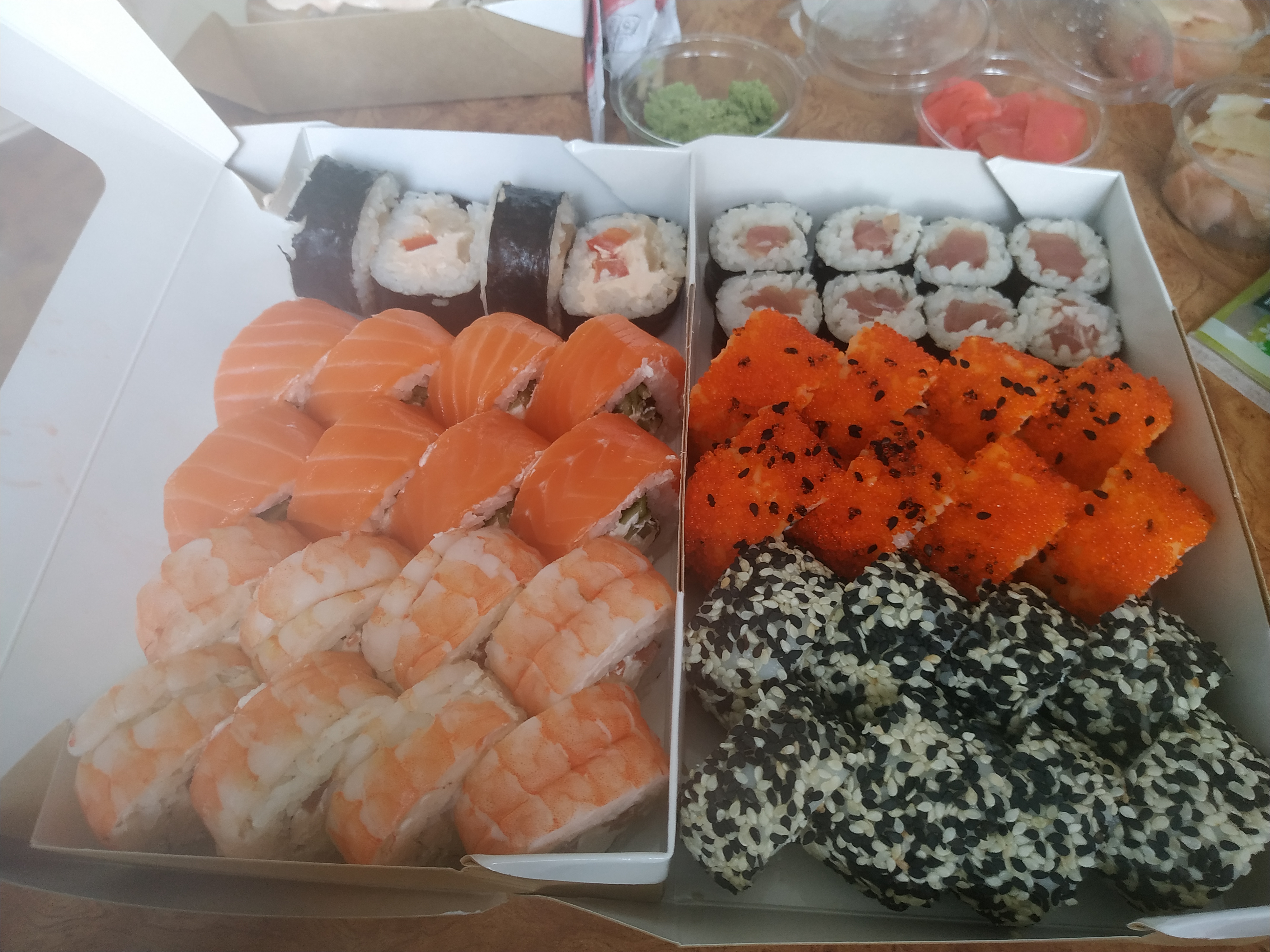 Вчера было просто обжорство)))) Повторно был "Норм сет" и  новый сет "Санни" очень вкусно и на уровне! Все довольны)) Доставка вовремя.