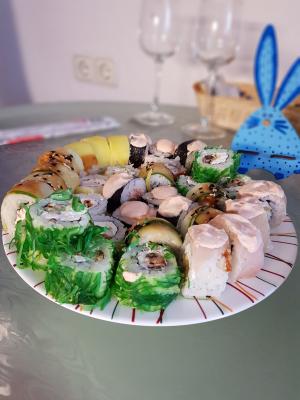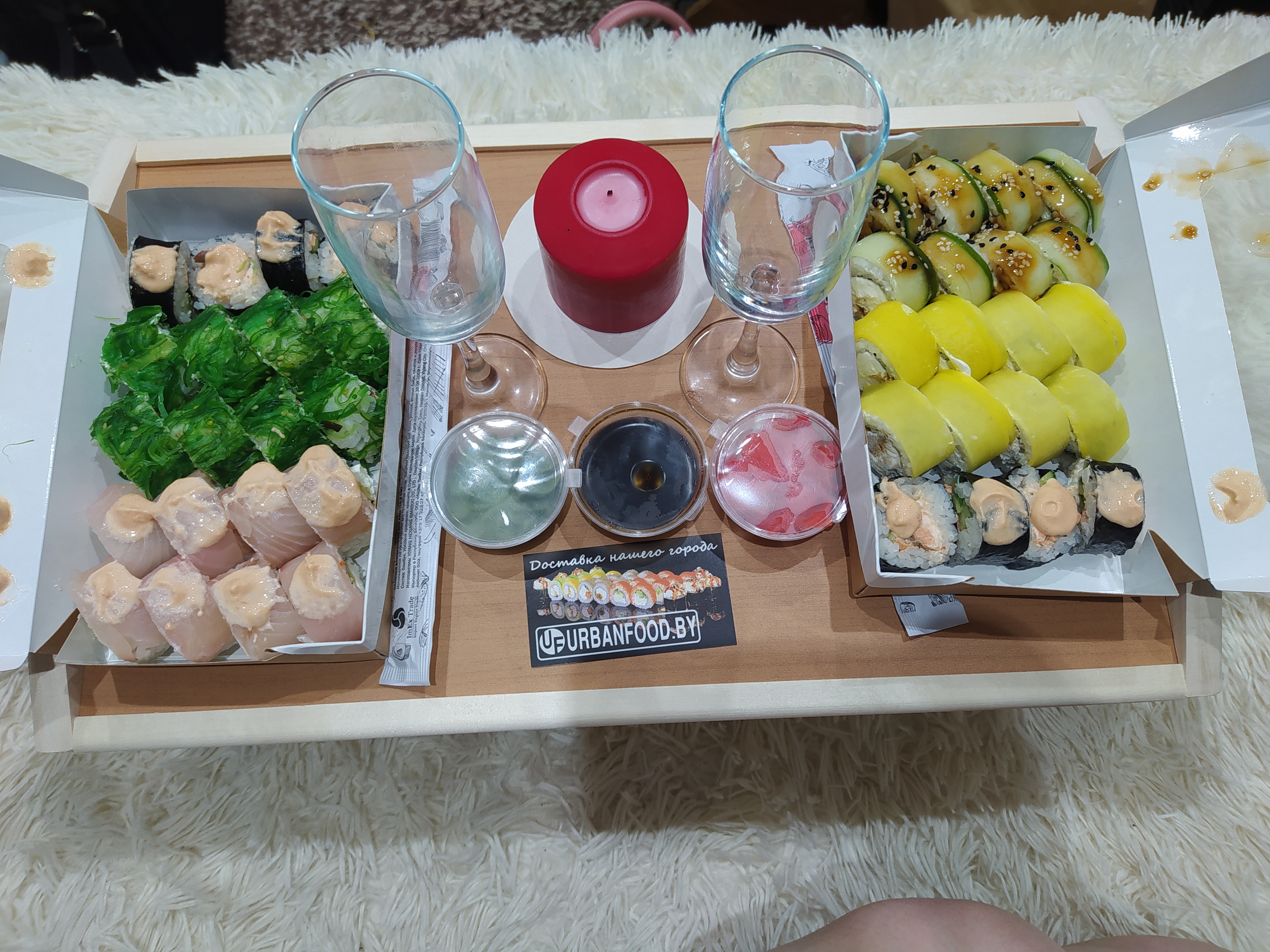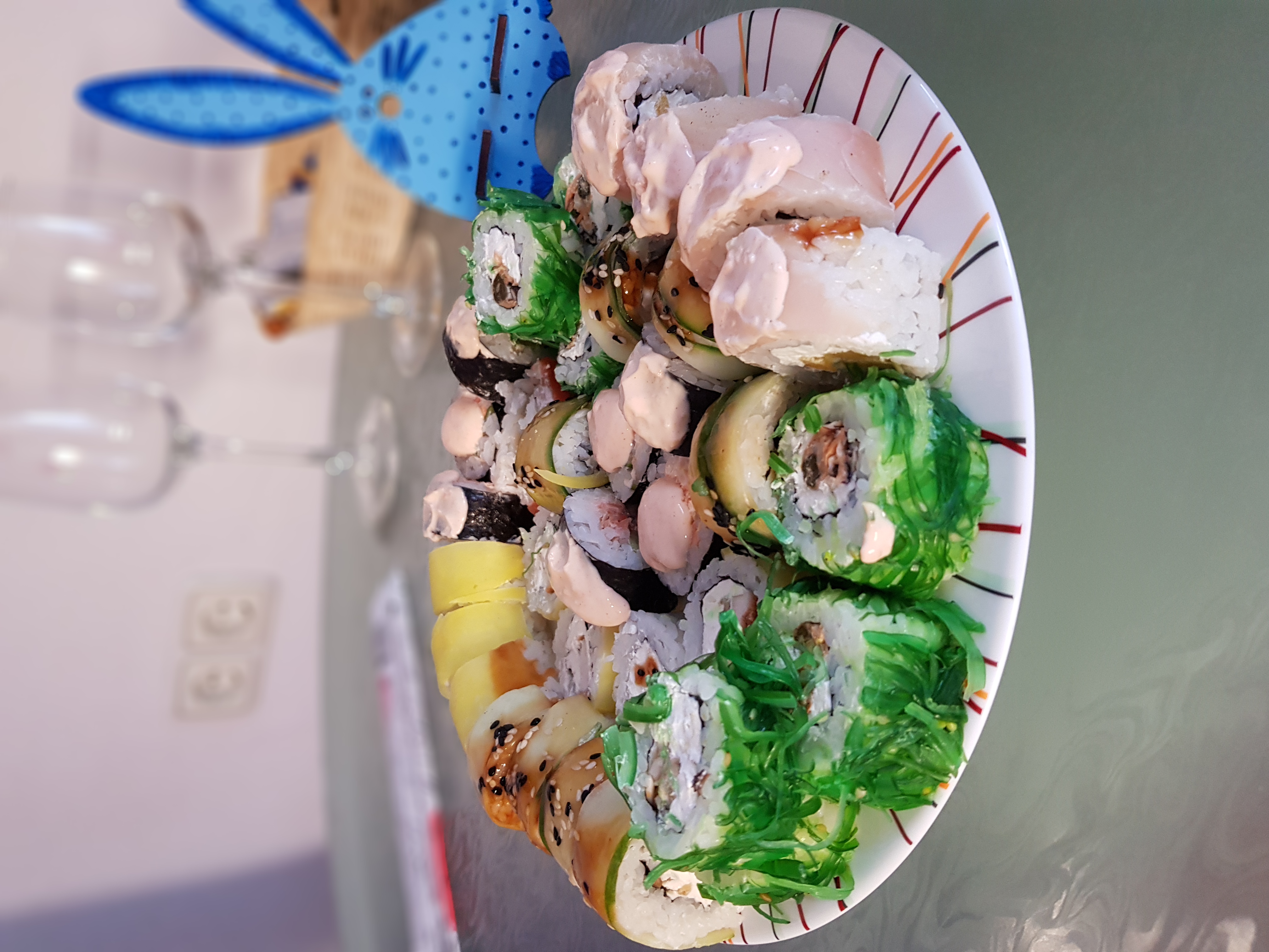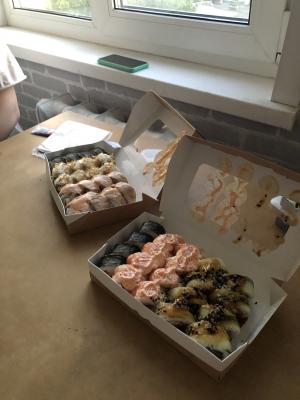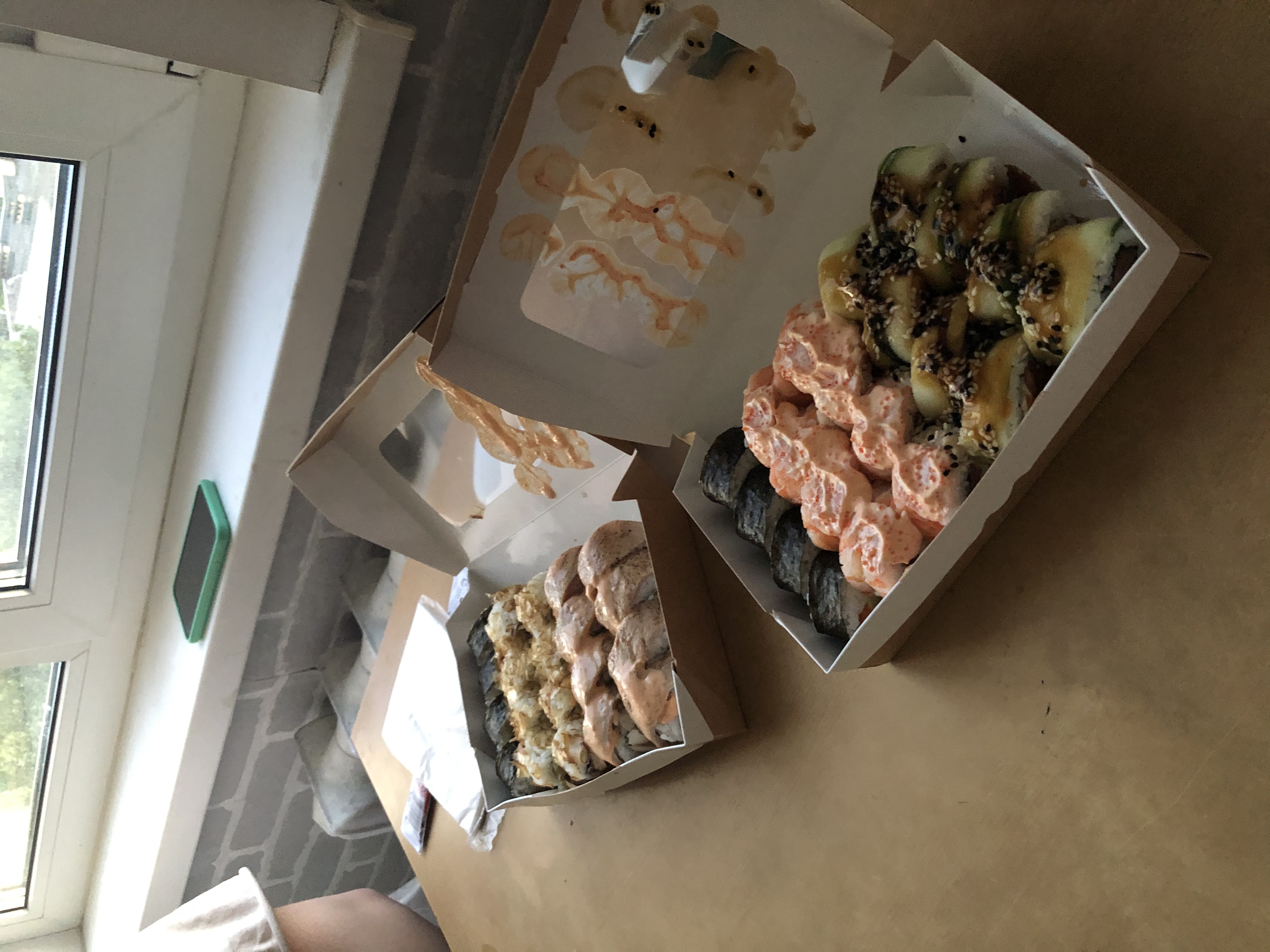 Вчера было просто обжорство)))) Повторно был "Норм сет" и  новый сет "Санни" очень вкусно и на уровне! Все довольны)) Доставка вовремя.
