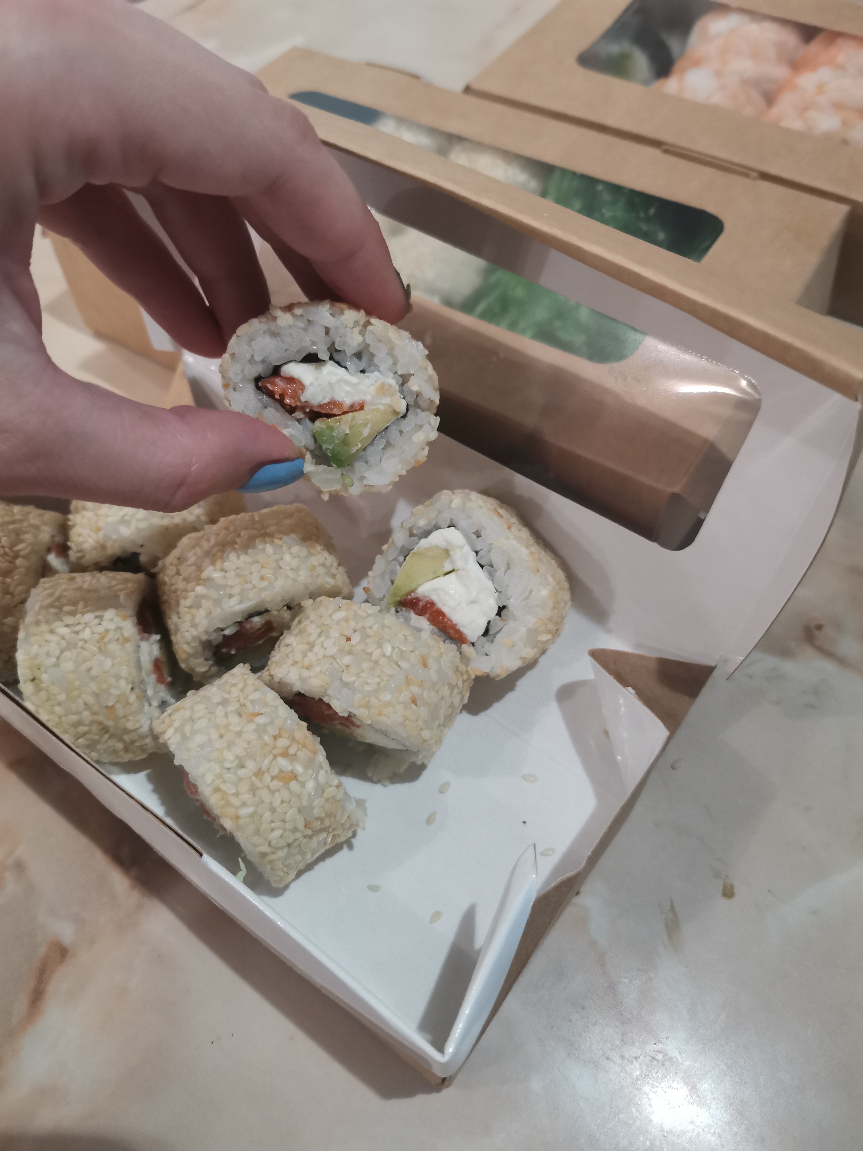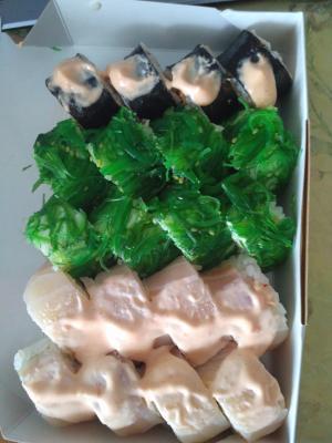Суши-не-суши. Страдает доставка, приехали все помятые. Но это полбеды. Самое неприятное что их пришлось есть ложкой,потому что палочками их не взять, сразу разваливались. Но может это только нам так не повезло в этот день.