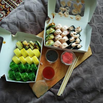 - Гарнир в подарок (при заказе сета). Бесплатная упаковка и 2 комплекта палочек!