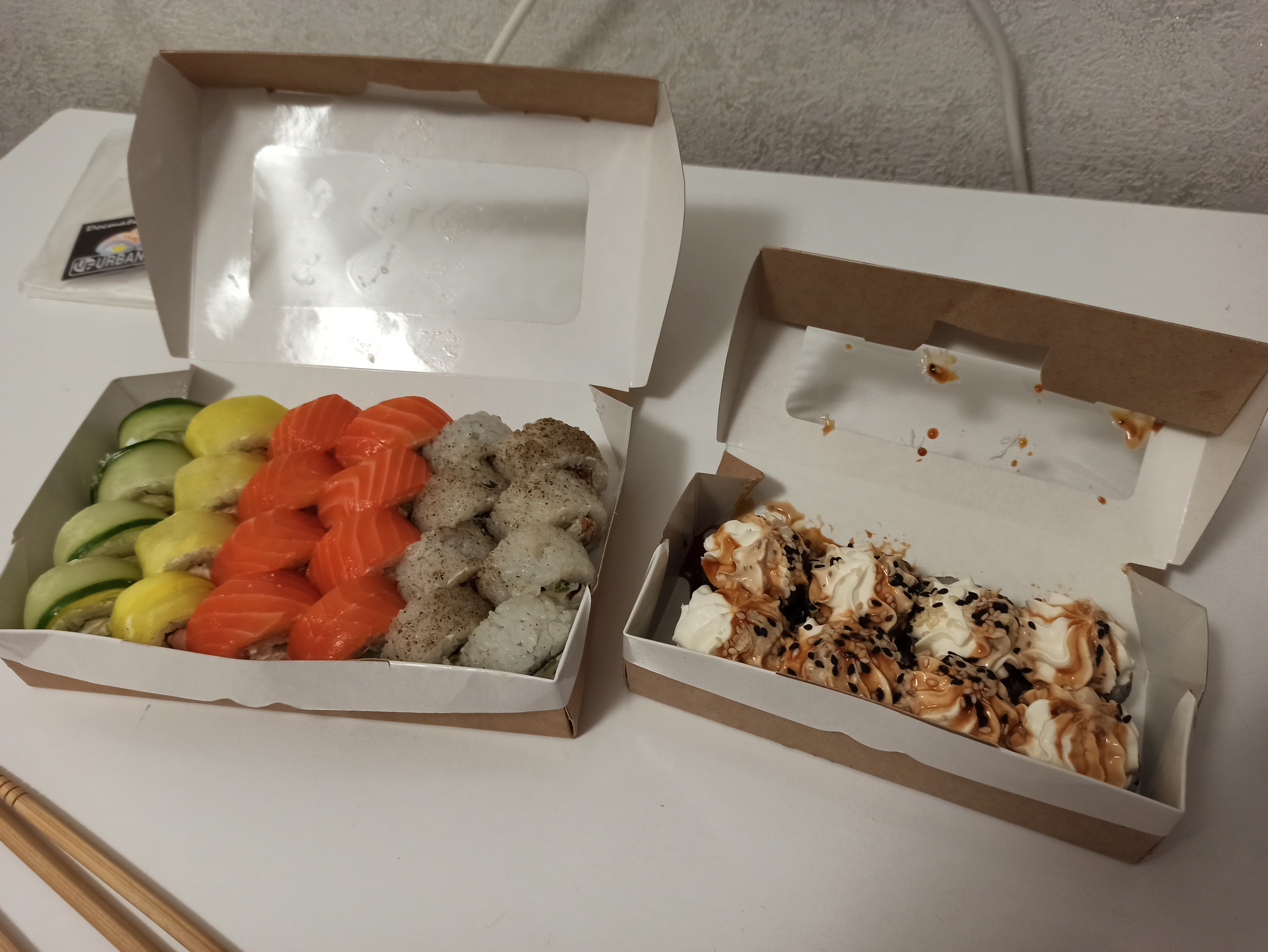Вкусно , но в этот раз наверное мы попали не на того повара или он просто был не в настроении , вкус и количество начинки изменилось, вместо угря - шкурки угря. Все заказы у вас до этого были значительно вкуснее🤗