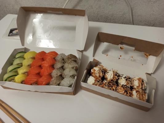 Заказывали суши, очень все оперативно, привезли к назначенному времени, суши вкусные,мы пробовали сет Kiss, очень достойно и аппетитно, рекомендую)