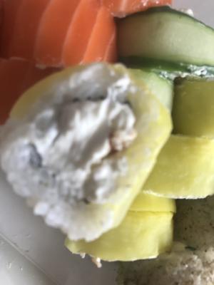 Вчера заказывали сет Изи. Было ощущение, что суши подмороженные. Рыбы на Филадельфии кот наплакал. Но не разваливались, это нынче уже плюс. Не могу сказать, что в восторге от этих суши, на троечку.