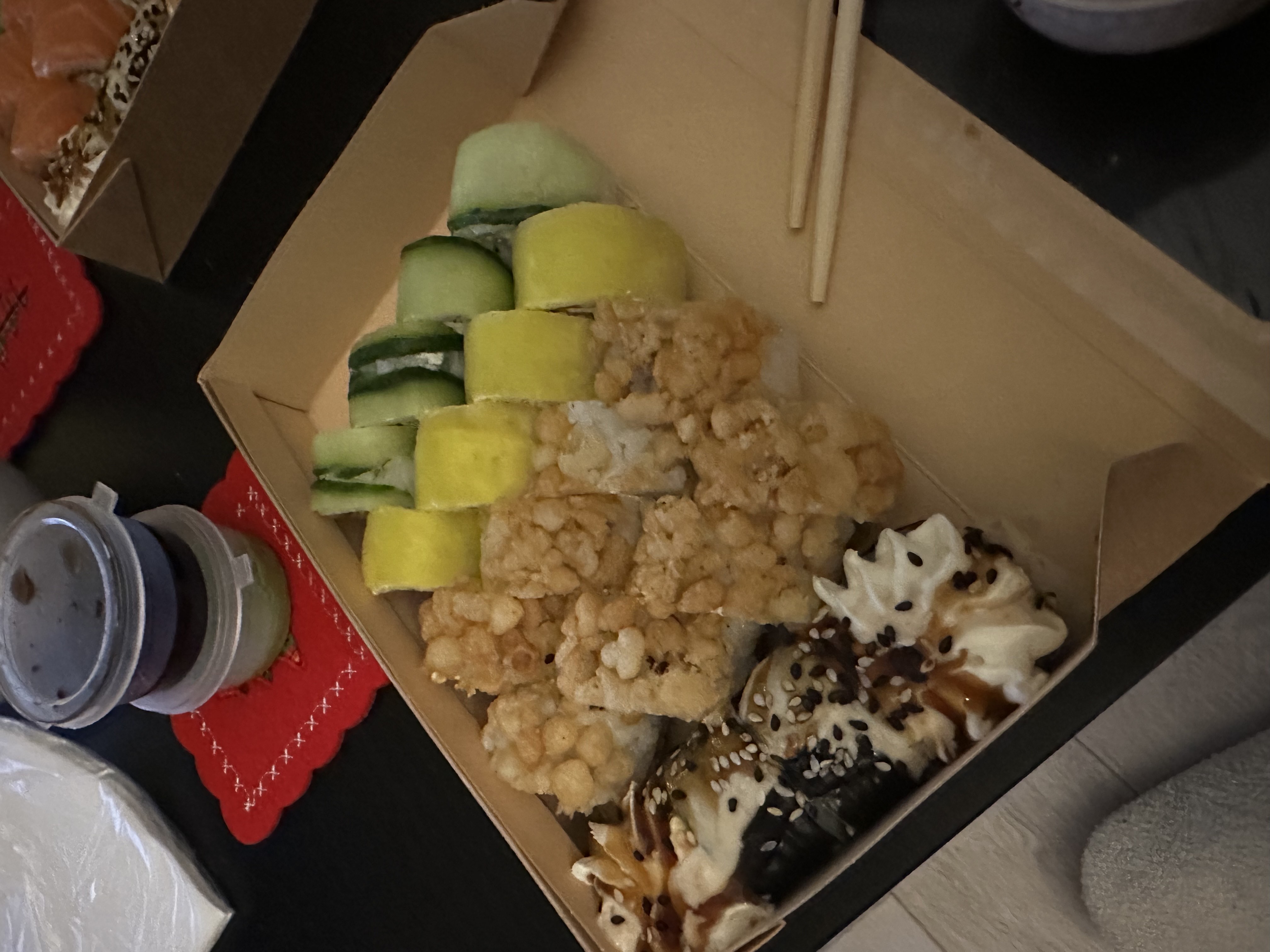 - Гарнир в подарок (при заказе сета). Бесплатная упаковка и 2 комплекта палочек!