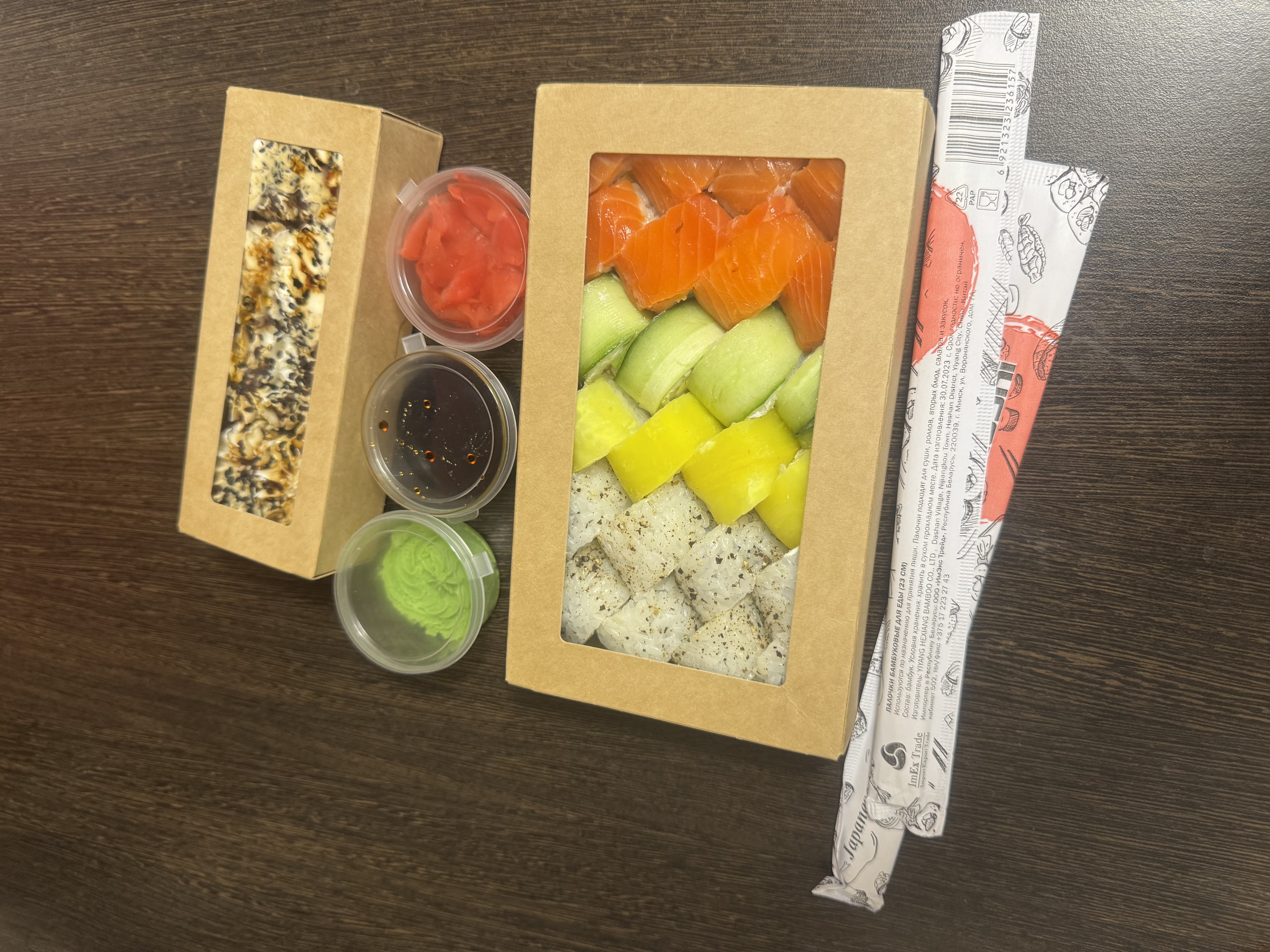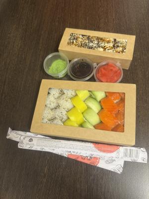 - Гарнир в подарок (при заказе сета). Бесплатная упаковка и 2 комплекта палочек!