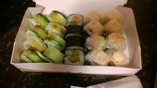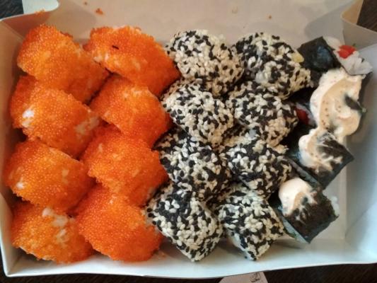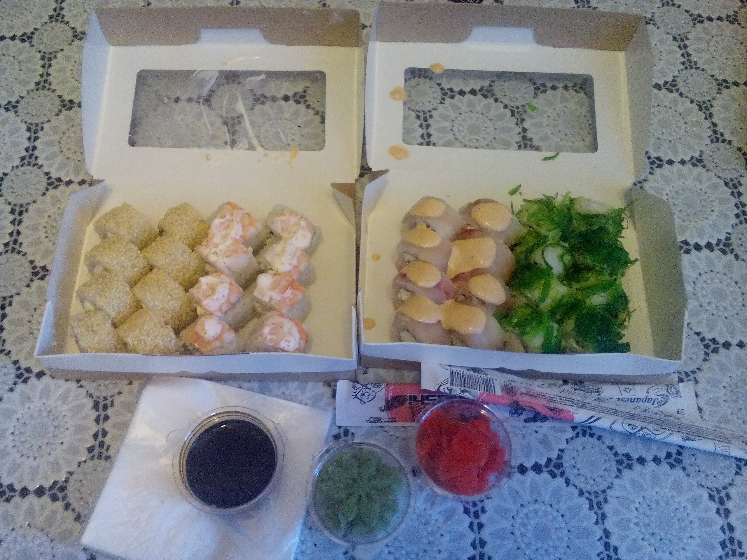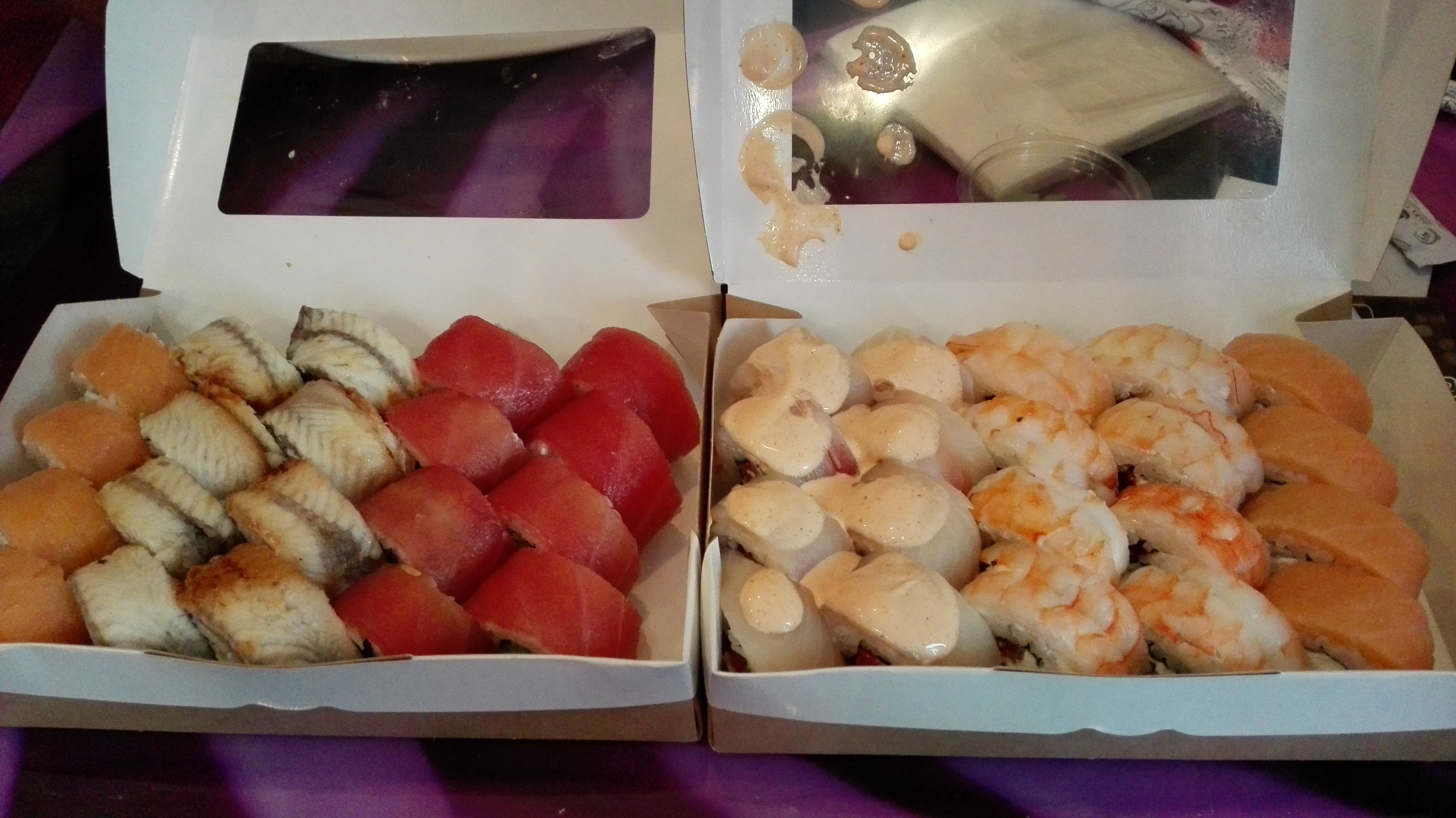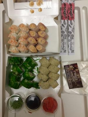 Всё как всегда на высшем уровне. Уже 3-ий раз заказываем тут суши и очень довольны. Суши всегда свеженькие и очень вкусные) Единственное долгая доставка, около 2 часов.