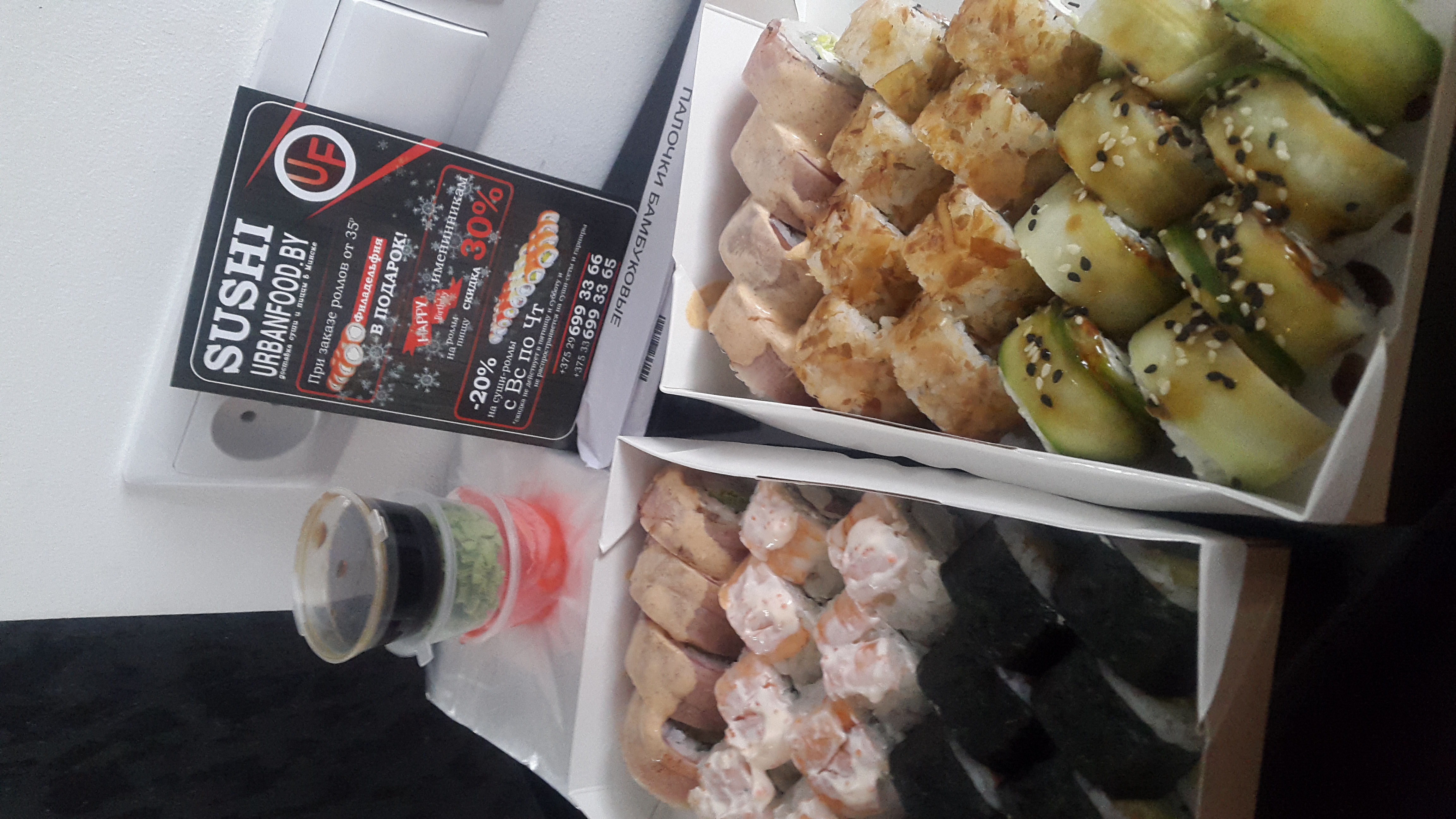 - Промокод дает право на скидку до 57% на суши-сеты, роллы от "Urbanfood.by"