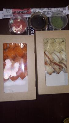 - Гарнир в подарок (при заказе сета). Бесплатная упаковка и 2 комплекта палочек!