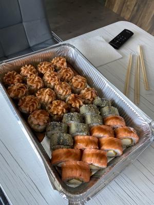 - каби маки (рис, нори, мидии, креветка, сыр филадельфия, спайси соус) - 4 шт.