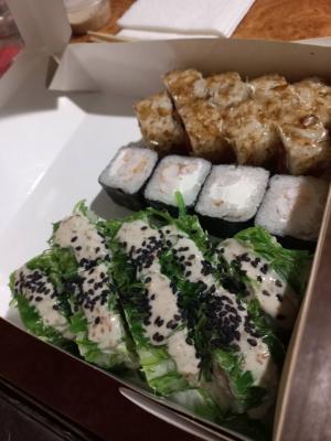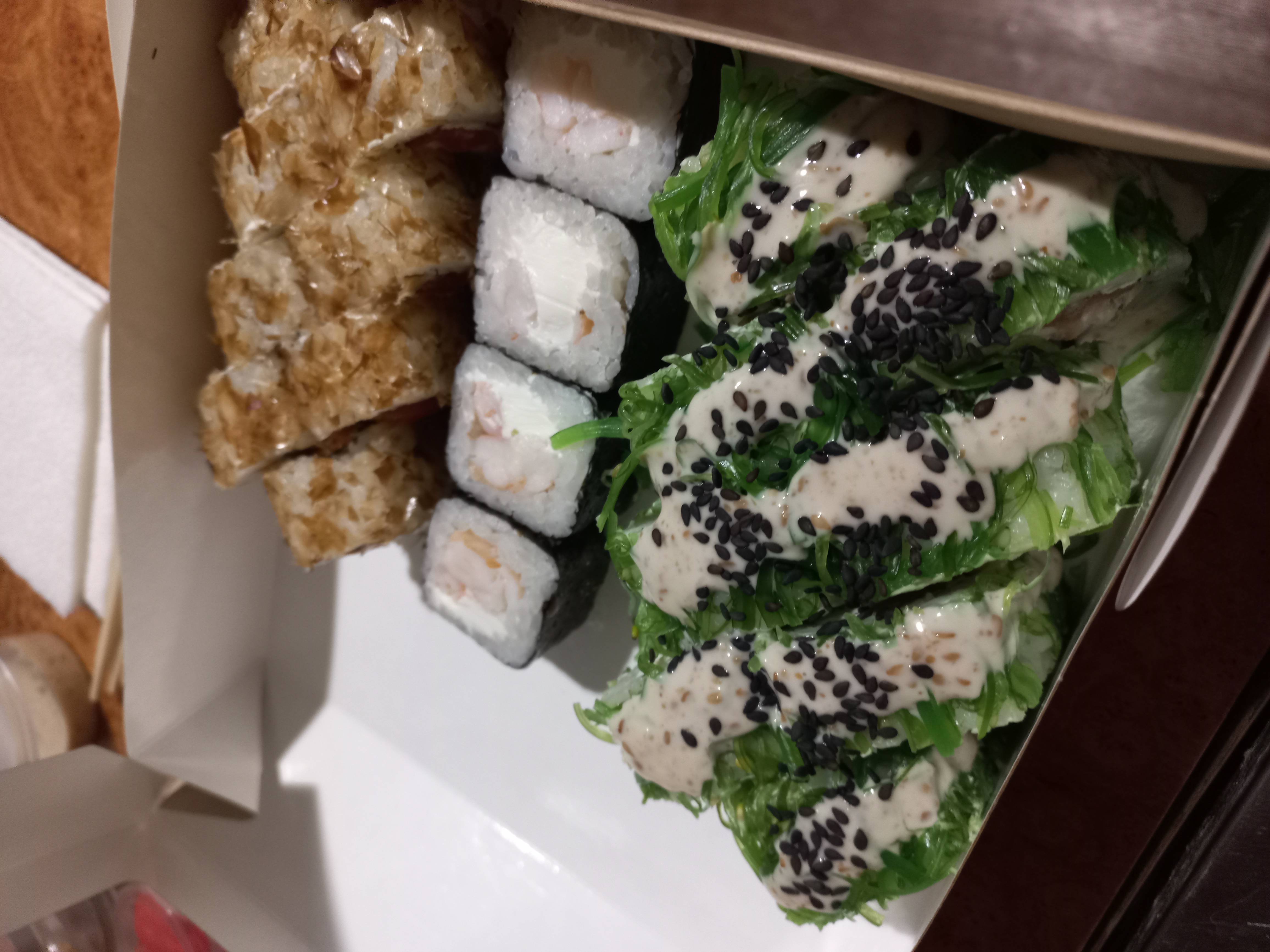 - гайи маки (рис, нори, лакедра п/копч, лосось, сыр филадельфия, салат чука) - 4 шт.