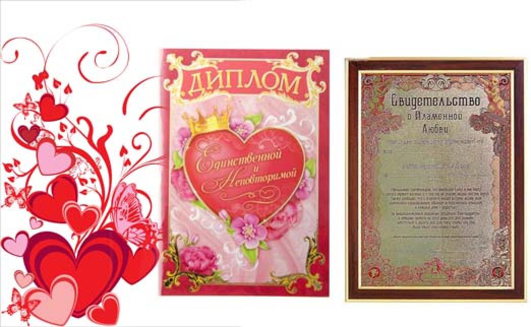 - свидетельство "О пламенной любви" в рамке: 13 руб. 20 руб.