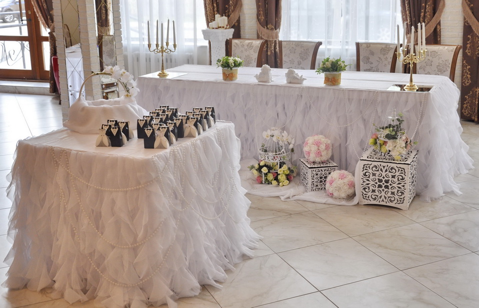 - оформление столика для дарения (юбка из вуали, казна для денежным подарков в аренду, декоративные элементы): 35 руб. вместо 50 руб.