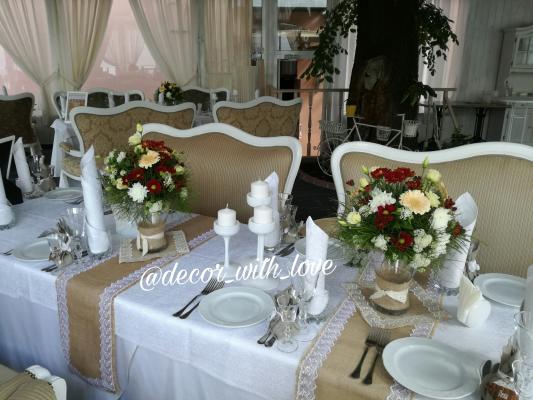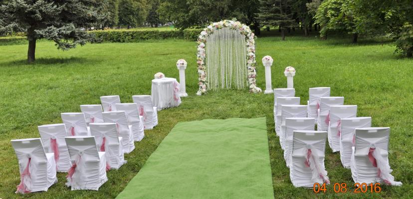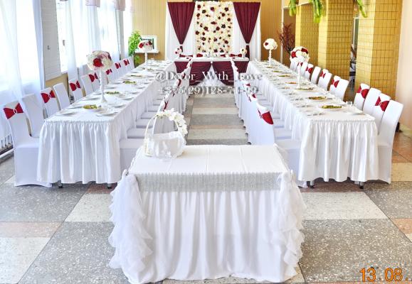 скидку 30% на оформление столика, стойки, чехлов на стулья, выездной регистрации