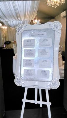 скидку 70% на оформление плана рассадки (мольберт, рамка, дизайнерское оформление плана рассадки).