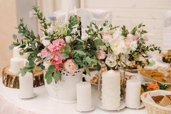 скидку 10% на живую флористику (живые цветы, букет невесты, бутоньерки, браслеты), бонбоньерки, декорирование свечей, шампанского, подсвечников, оформление книги пожеланий и на все остальные элементы декора, не указанные в перечне выше!